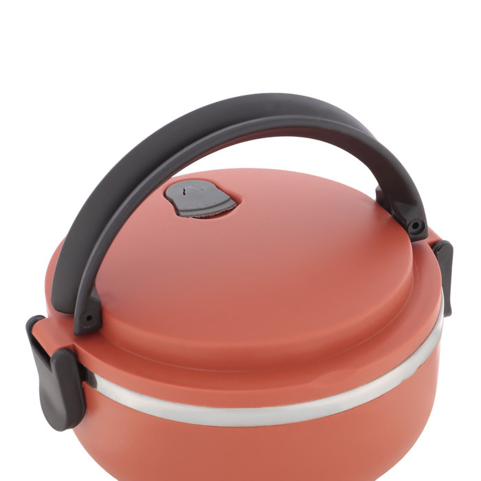 Берите обед с собой! Ланч-бокс на 1,4 л — круглый металлический контейнер с герметичной крышкой и внутренними перегородками для раздельного хранения блюд. Объём подходит на полноценный приём пищи, а р... Показать описаниеучка на корпусе упрощает переноску в сумке или рюкзаке. Особенности: * Раздельные отсеки: основное блюдо, гарнир, салат или соус не смешиваются. Каждый компонент сохраняет форму, вкус и температуру в течение пары часов. * Герметичность: крышка плотно закрывается, сохраняя все ароматы и температуру блюд. * Качественный материал: корпус из нержавеющей стали защищает от повреждений, а внутренние лотки безопасны для контакта с едой. * Ручка и компактные размеры: удобно носить одной рукой, легко разместить в офисном шкафу или рюкзаке. Ланч-бокс подходит для готовых блюд, нарезанных овощей, фруктов, закусок или даже завтрака. Он не предназначен для СВЧ и посудомоечной машины — это сознательный выбор в пользу долговечности и сохранения герметичности.