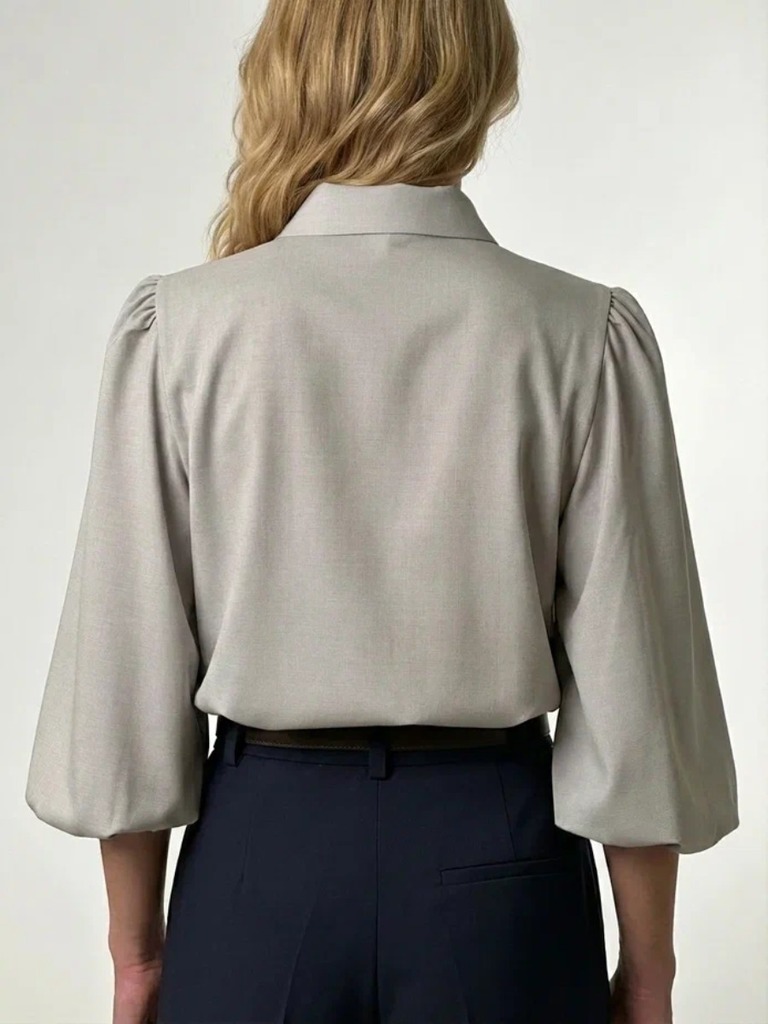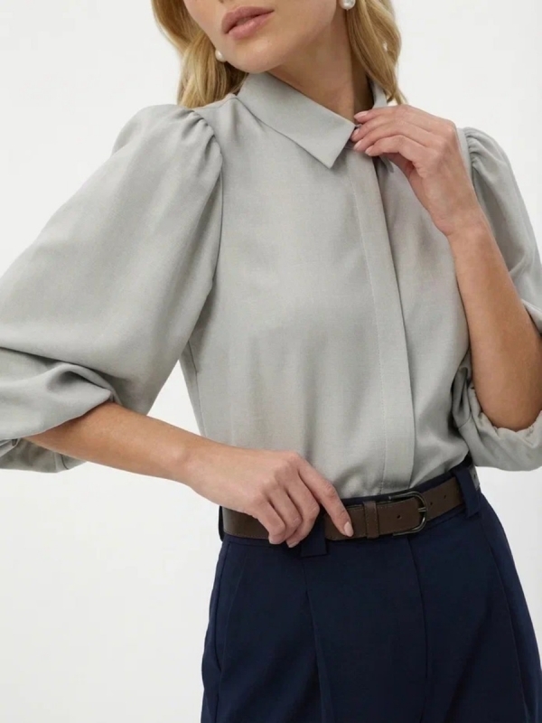 Блузка из органзы с бархатной завязкой и защипами OD-951-2 серо-зеленыйВопросы по товару