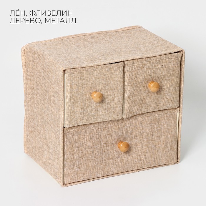 Короб для мелочей LaDо?m «Франческа», 3 выдвижных ящика, 30?20?28 см, бежевыйВопросы по товару