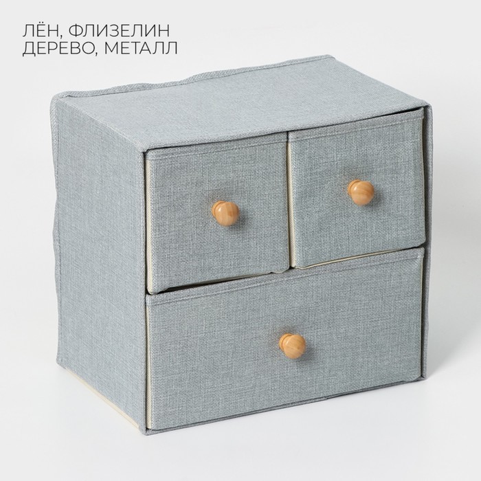 Короб для мелочей LaDо?m «Франческа», 3 выдвижных ящика, 30?20?28 см, серо-голубойВопросы по товару