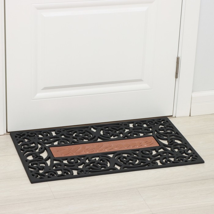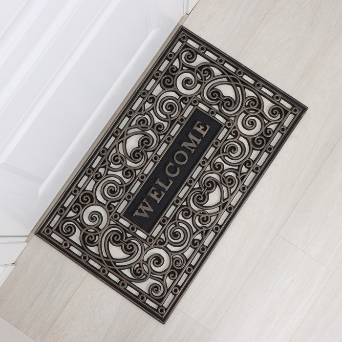 Коврик придверный Доляна Welcome, вензель, узорный, 45?75 см, чёрныйКоврик придверный Доляна Welcome, вензель, узорный, 45?75 см, чёрныйКоврик придверный Доляна Welcome, вензель, узорный, 45?75 см, чёрный