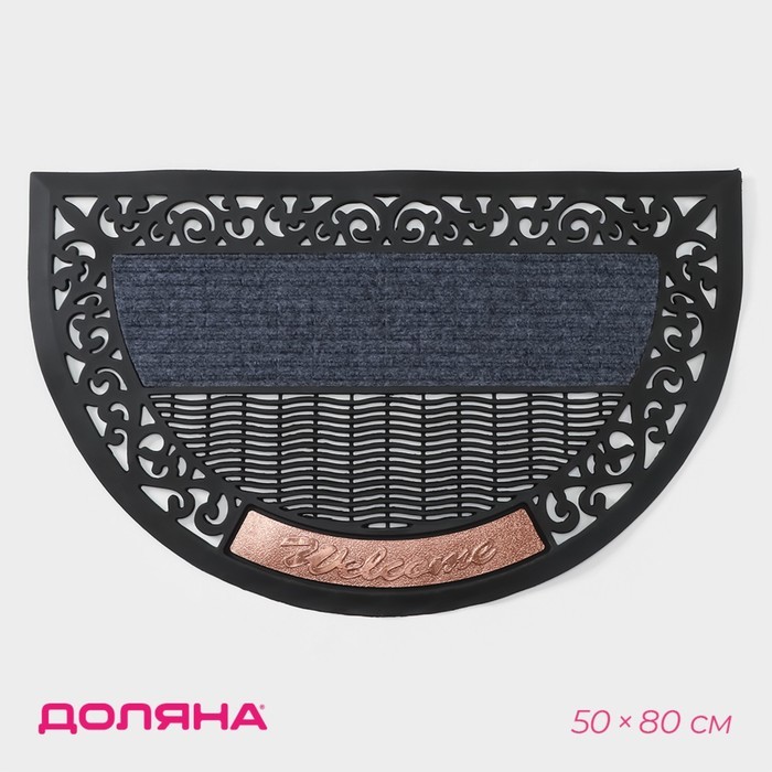 Коврик придверный Доляна Welcome, полукруглый, с окантовкой, 40?60 см, серый