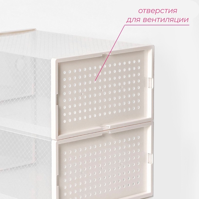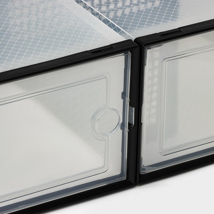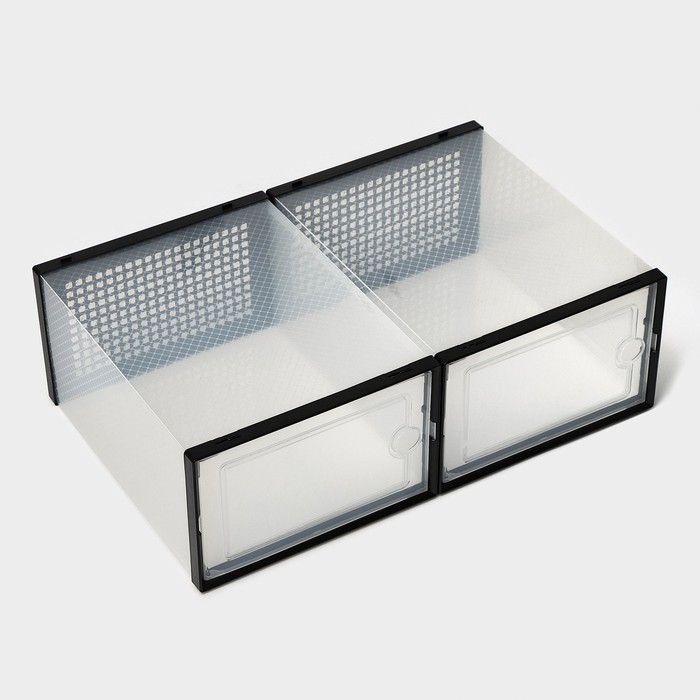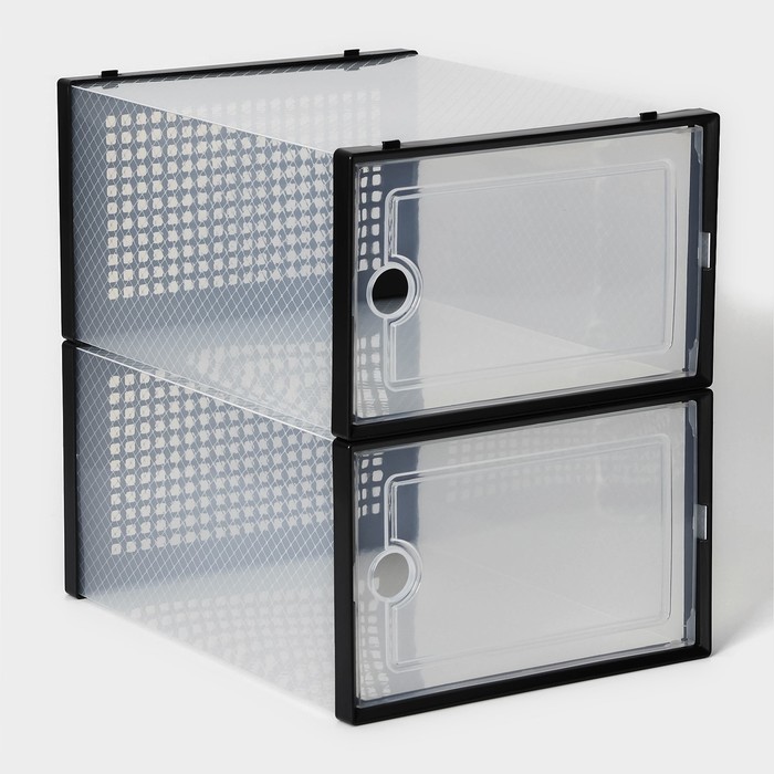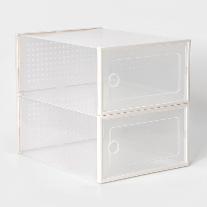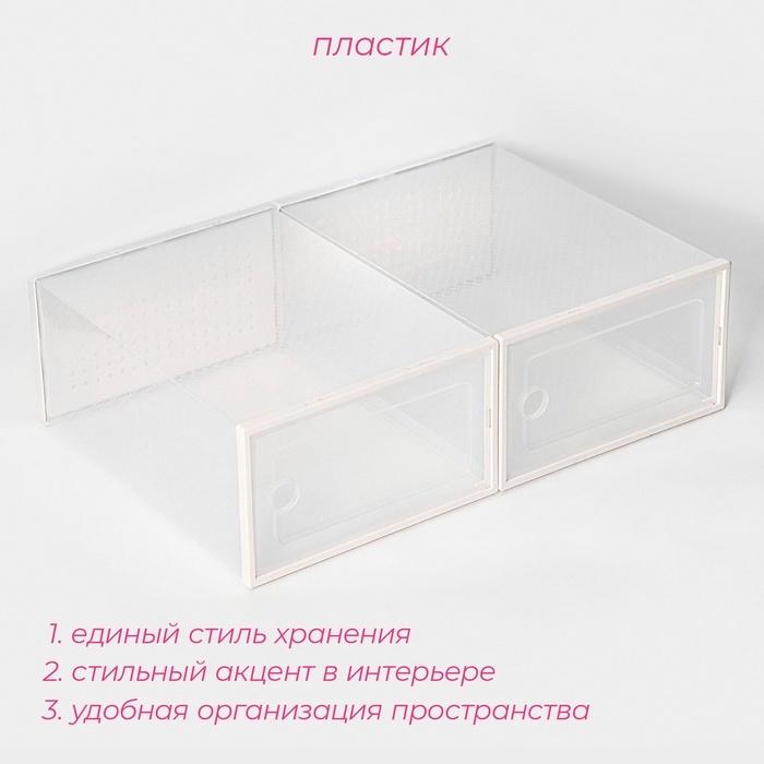 Коробка для хранения обуви с дверцей Доляна Middle size, 24_33_14 см, 2 штВопросы по товару