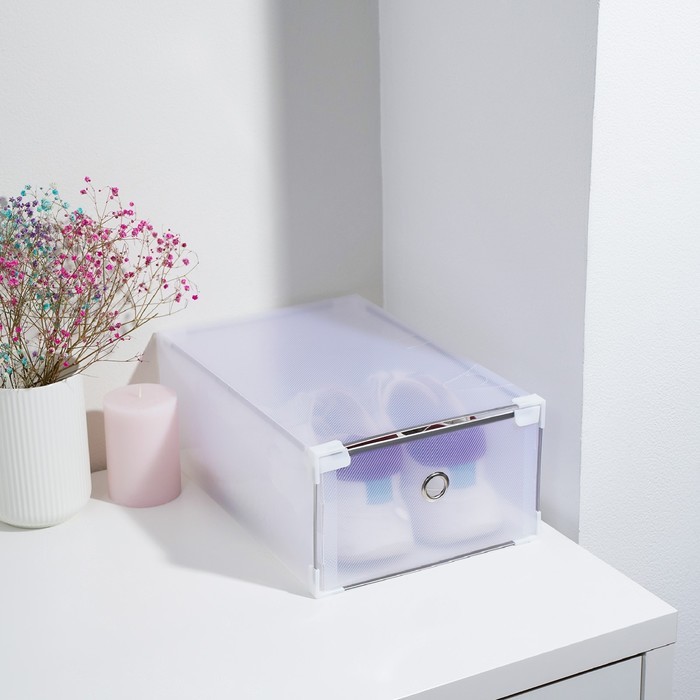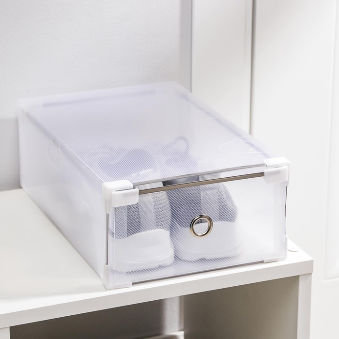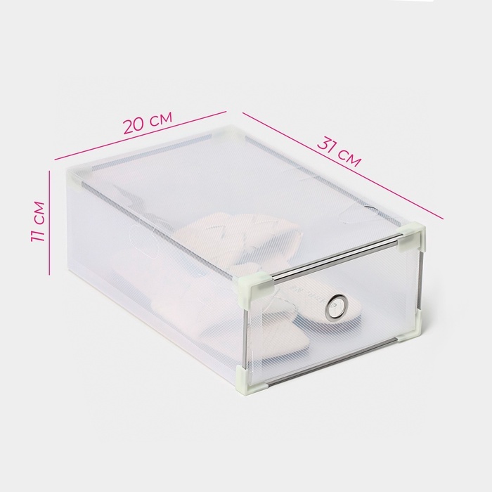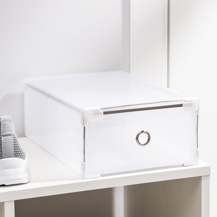 Коробка для хранения обуви выдвижная Доляна Middle size, 20?31?11 см, 3 шт., белаяВопросы по товару