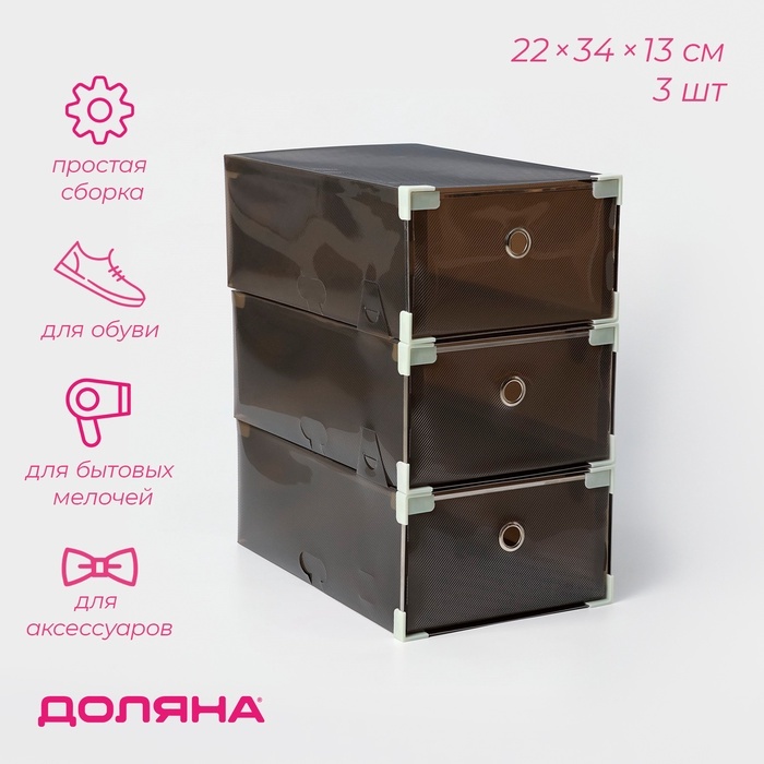 Коробка для хранения обуви выдвижная Доляна Large size, 22?34?13 см, 3 шт., чёрнаяВопросы по товару