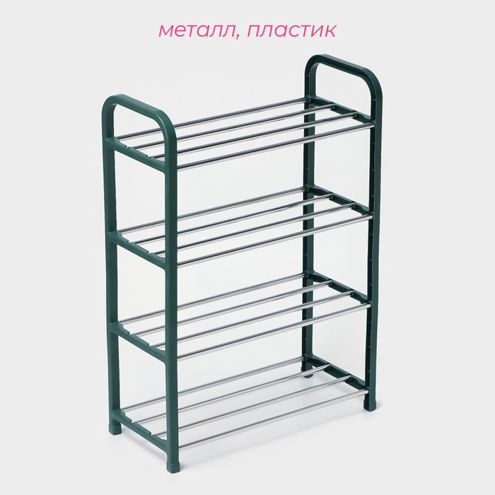 Полка для обуви Доляна, 4 яруса, 42?19?59 см, зелёнаяВопросы по товару