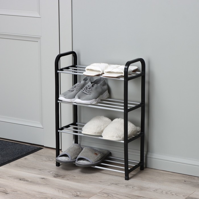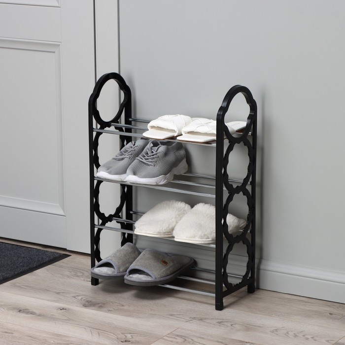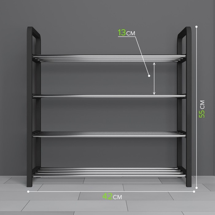 Полка для обуви Доляна, 4 яруса, 42?19?55 см, чёрнаяВопросы по товару