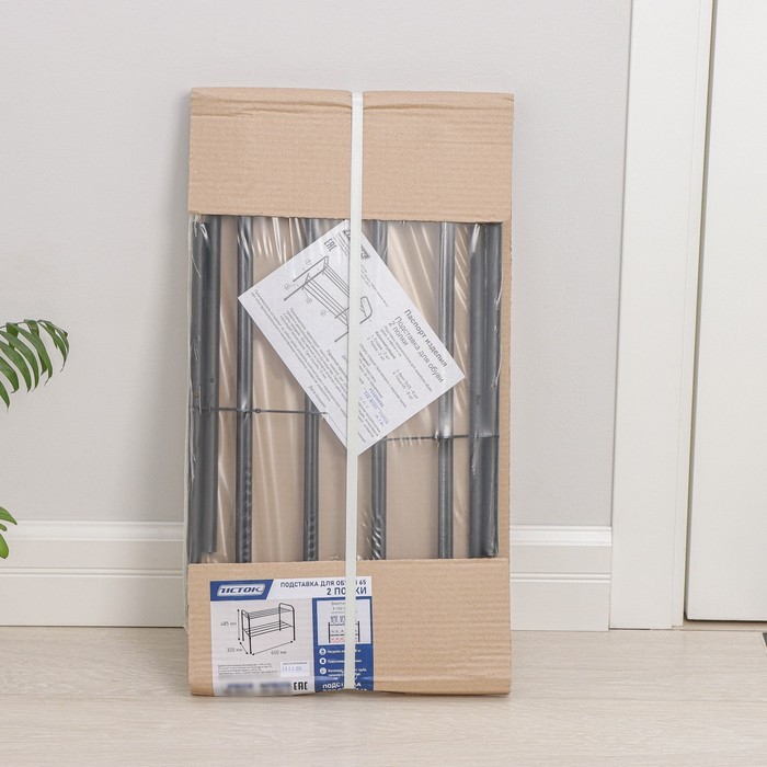 Вас раздражает беспорядок в прихожей? Тогда приобретите полку для обуви. Изделие имеет пластиковый каркас и металлические прутья c антикоррозийным полимерным покрытием, они обеспечивают прочность и ус... Показать описаниетойчивость. Преимущества * Размеры: компактная мебель аккуратно впишется в маленькое помещение. Таким образом, можно освободить дополнительное место в прихожей. * Вес: при необходимости этот предмет переставит даже хрупкая женщина, так как он изготовлен из лёгких материалов. * Долговечность: благодаря прочной конструкции и антикоррозийному покрытию первоначальный вид сохранится на протяжении длительного времени. * Ухоженность: кроссовки, туфли и сапоги не мнутся, не теряют форму и проветриваются. Приспособление является не только отличным местом расположения повседневных вещей, но и мебелью, где можно хранить обувь в межсезонье, когда определённые модели вам временно не нужны. Комплектация Край стойки - 2 шт; Тонкие прутья - 6 шт; Толстые прутья - 6 шт. Дополнительно Перед тем как приступить к сборке обувницы, убедитесь, что трубы правильно разделены по размеру. Большие трубы должны быть установлены внизу, а меньшие — вверху. Это обеспечит надёжность и устойчивость конструкции.