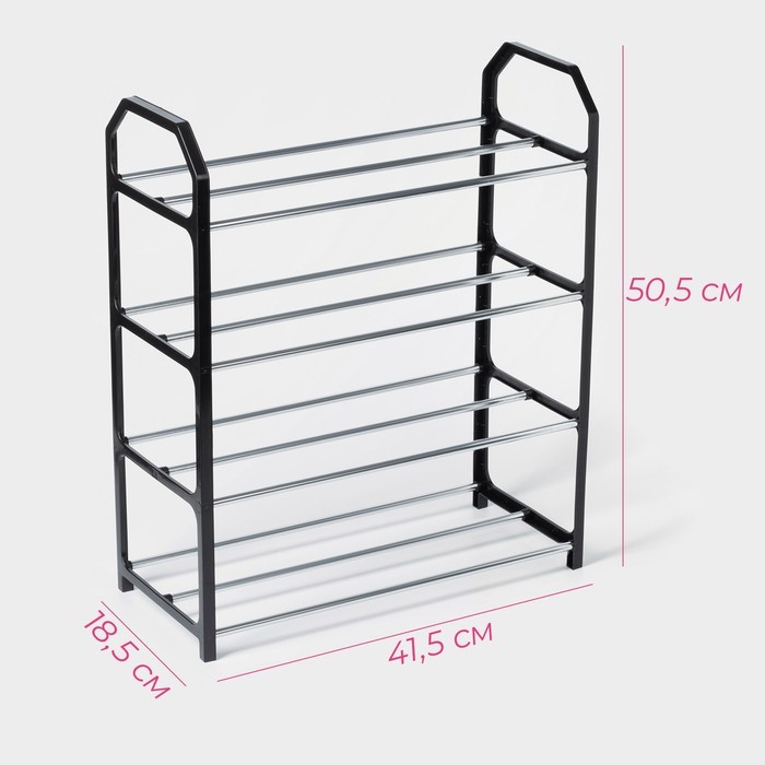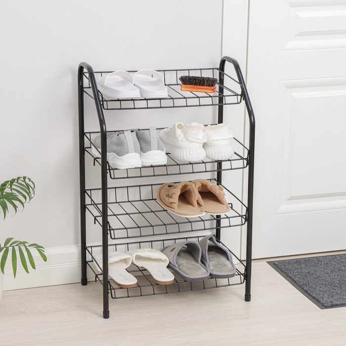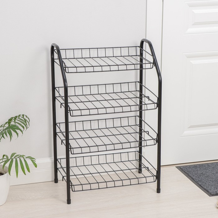 Полка для обуви Доляна, 4 яруса, 41.5?18.5?50.5 см, чёрнаяВопросы по товару