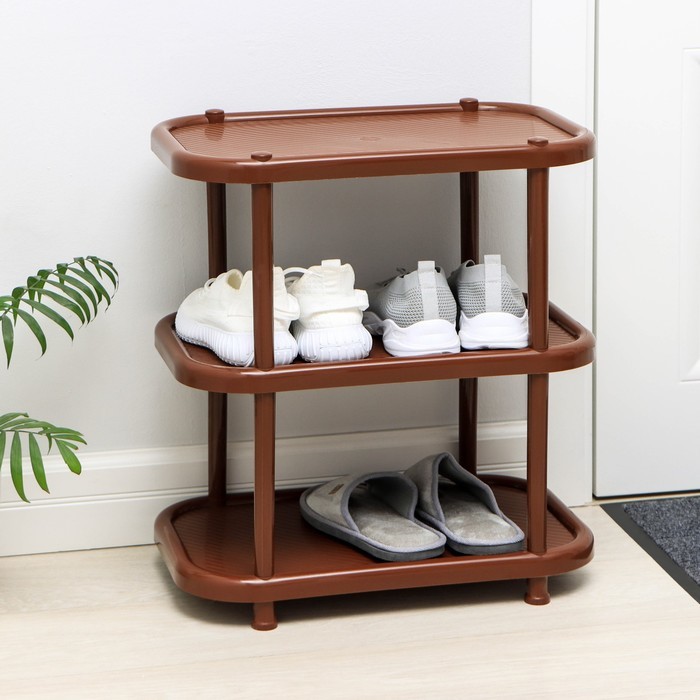 Полка для обуви, 3 яруса, 49.2?30.7?58.2 см, пластик, коричневаяВопросы по товару