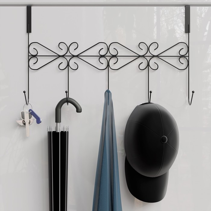 Вешалка на дверь на 5 крючков Доляна «Вензель», 38?22.5?10 см, чёрнаяВопросы по товару