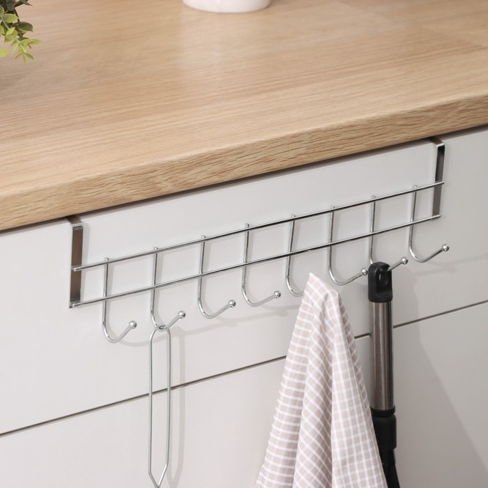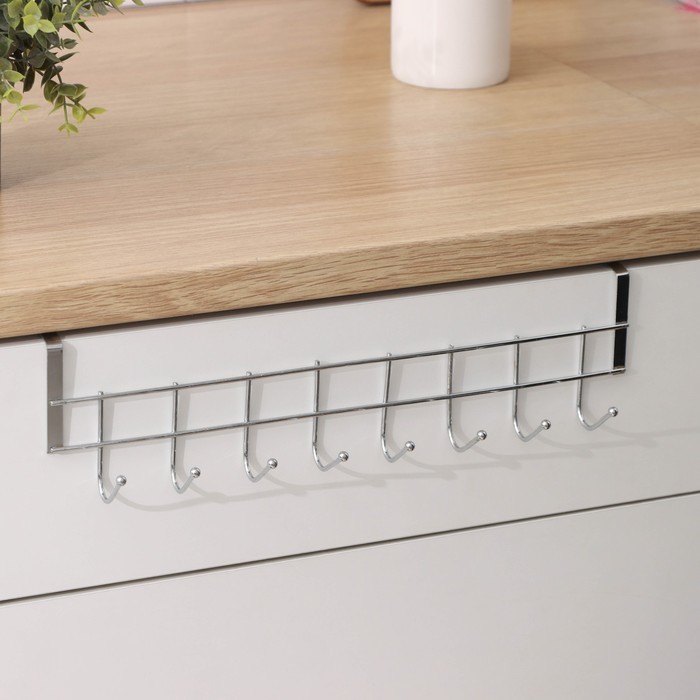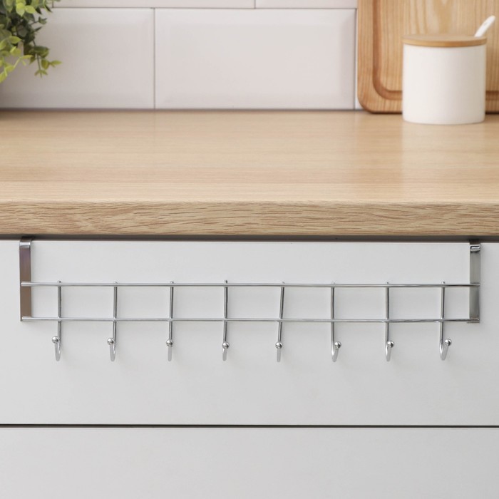 Вешалка на дверь на 8 крючков Доляна «Блеск», 36?9?2 см, хромВопросы по товару