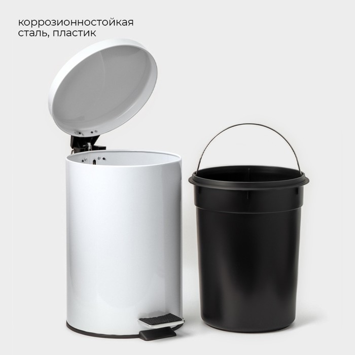 С радостью представляем вам элегантное и функциональное решение для поддержания чистоты в вашем доме — мусорное ведро с педалью! Этот стильный аксессуар выполнен из высококачественной нержавеющей стал... Показать описаниеи, что не только гарантирует его долговечность, но и добавляет современный оттенок в интерьер вашего пространства. Объем в 3 литра делает его идеальным дополнением для кухни, ванной или рабочего кабинета. Благодаря цилиндрической форме и чистому белому цвету, ведро легко вписывается в любую обстановку, а его лаконичный дизайн будет гармонировать с различными стилями интерьера. * Легкость в использовании: педальный механизм позволяет открывать крышку без необходимости касаться ведра, что способствует поддержанию гигиеничности и удобства. * Высокое качество материала: нержавеющая сталь не только красиво выглядит, но и устойчива к коррозии и повреждениям, обеспечивая долгий срок службы продукта. * Компактный размер: объем 3 литра делает ведро идеальным вариантом для небольших пространств, не занимая много места, и в то же время достаточно вместительным для ежедневных отходов. * Закрытая крышка: продуманный механизм с крышкой помогает скрыть неприятные запахи, создавая свежую атмосферу в комнате. * Стильный внешний вид: белый цвет и строгие линии делают это ведро эффектным аксессуаром, который станет настоящим акцентом вашего интерьера. Дополнительно Внимание: На товаре могут быть небольшие вкрапления в покраске. Это связано с особенностями технологии нанесения покрытия и не считается дефектом. Не влияют на функциональность и качество товара.