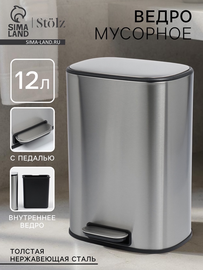 Ведро мусорное с педалью St?lz, 12 л, нержавеющая сталь, хром матовыйВопросы по товару