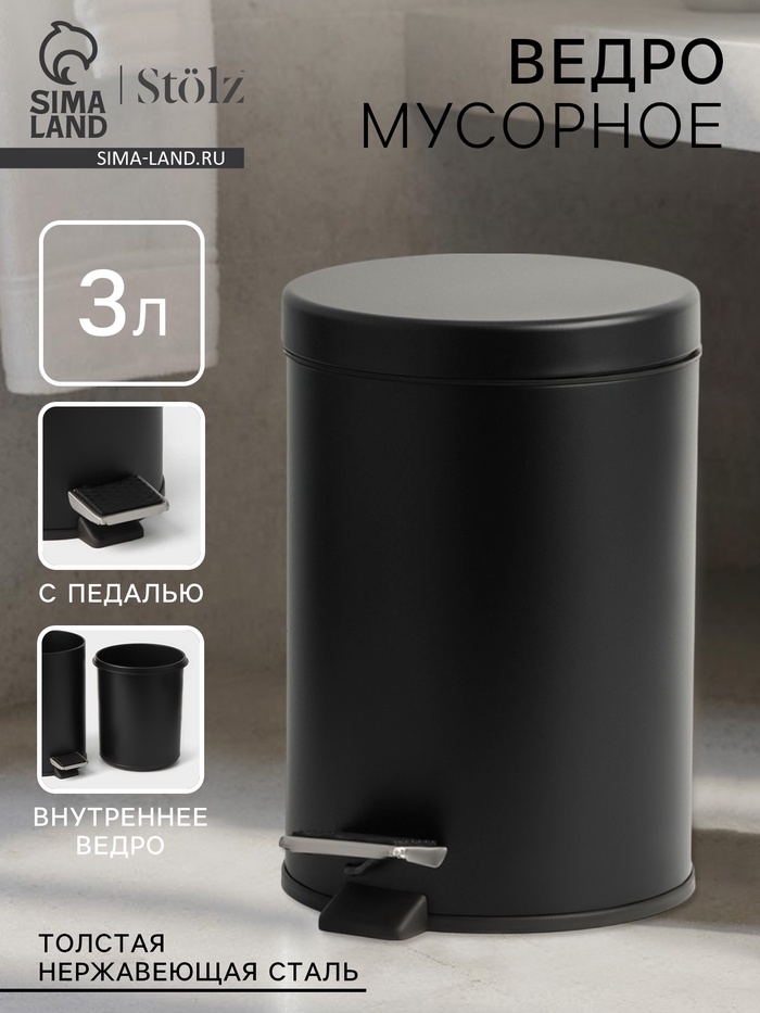 Ведро мусорное с педалью St?lz, 3 л, нержавеющая сталь, чёрноеВопросы по товару