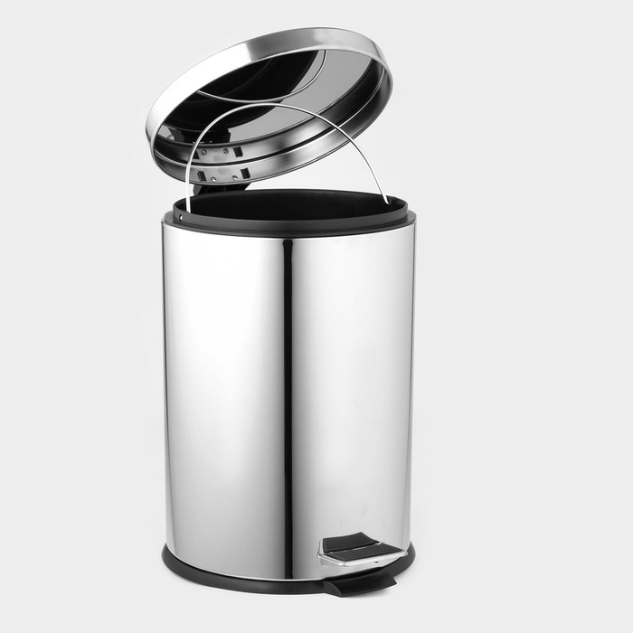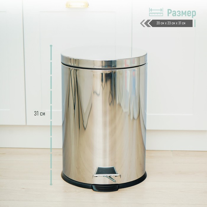 Мусорное ведро с педалью «Доляна» объёмом 3 л из нержавеющей стали. Стильный серебристый цвет, круглая форма и удобная крышка делают его универсальным решением для кухни, офиса или ванной комнаты. Пед... Показать описаниеальный механизм позволяет открывать ведро без помощи рук, сохраняя гигиену. Подходит для любого возраста и интерьера. Преимущества * Гигиеничность – педаль позволяет открывать крышку без касаний, уменьшая контакт с бактериями. * Долговечность – нержавеющая сталь и хромированное покрытие устойчивы к коррозии и механическим повреждениям. * Компактность – небольшой объём (3 л) идеально подходит для помещений с ограниченным пространством. * Удобство использования – крышка плотно закрывается, предотвращая распространение запахов. * Лёгкая очистка – гладкая поверхность не впитывает загрязнения и легко моется. * Универсальность – подходит для мусора, использованных салфеток, упаковок и других бытовых отходов. * Эстетичный вид – хромированное покрытие придаёт современный и аккуратный внешний вид. * Бесшумность – плавный механизм педали работает тихо, не создавая лишнего шума. Практичное, гигиеничное и стильное решение для вашего дома. Больше не нужно наклоняться или пачкать руки – просто нажмите ногой, и ведро откроется. Нержавеющая сталь прослужит долго, а хромированная поверхность сохранит безупречный вид. Выбирайте удобство, качество и чистоту без лишних затрат. Дополнительно Внутреннее ведро: 16?18,5 см.