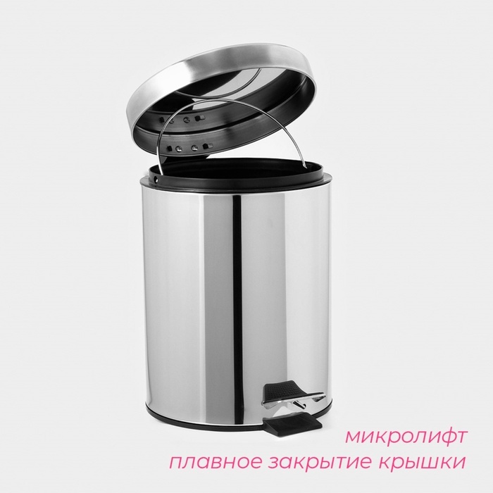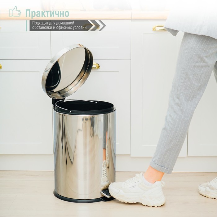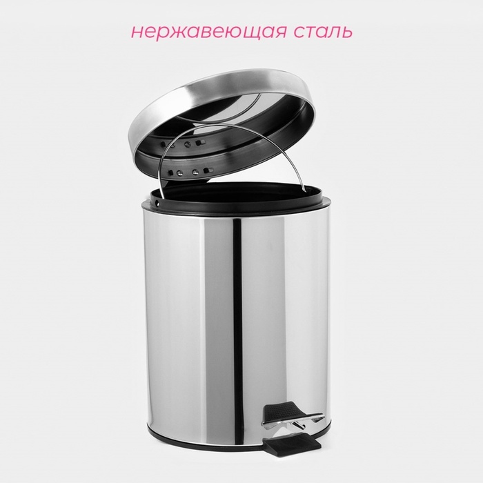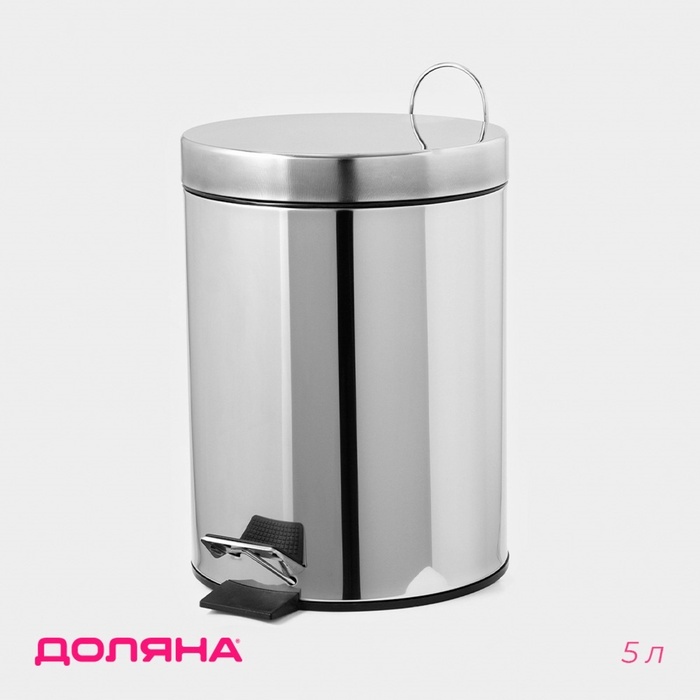 Ведро мусорное с педалью Доляна, 5 л, нержавеющая сталь, хромированноеВопросы по товару