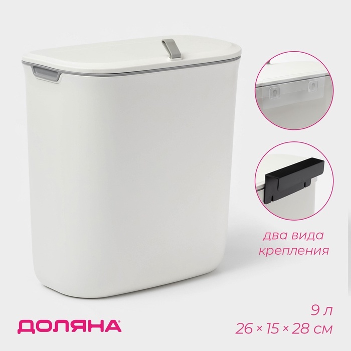 Ведро для мусора подвесное Доляна, 9 л, 2 вида крепления, белоеВопросы по товару