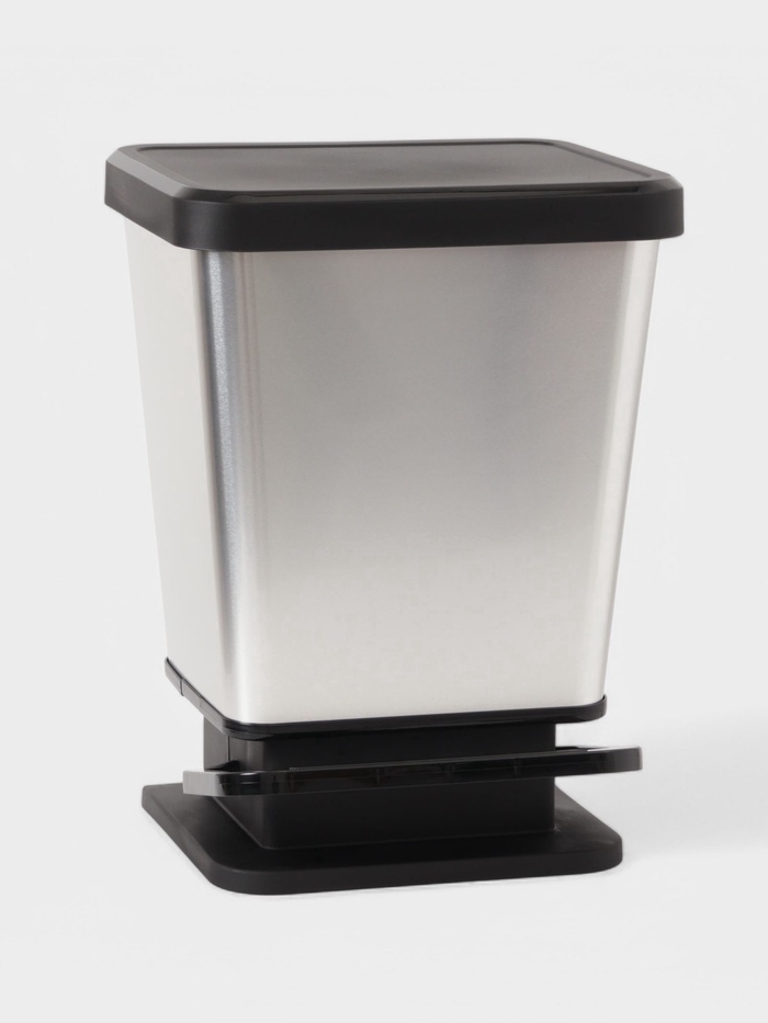Дополнительно Внешние размеры ведра: * Длина - 24 см. * Ширина - 16 см. * Высота - 28.5 см. * Ширина с педалью - 20 см. * Длина педали - 9 см. * Ширина педали - 3 см.