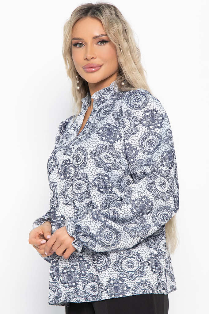 Состав : 75% полиэстер, 20% шелк, 5% эластан Материал : блузочный Цвет : белый Принт : голубые узоры на белом фоне Силуэт : прямой Карманы : отсутствуют Подкладка : отсутствует Вид застежки : без заст... Показать описаниеёжки Декоративные элементы : отсутствуют Длина : 44 - 64 см,, 46 - 65 см,, 48 - 66 см,, 50 - 67 см,, 52 - 68 см,, 54 - 69 см,, 56 - 69 см Обхват груди : 44 - 104, 46 - 108, 48 - 112, 50 - 116, 52 - 120, 54 - 124, 56 - 128 Обхват бёдер : 44 - 110, 46 - 114, 48 - 118, 50 - 122, 52 - 126, 54 - 130, 56 - 134 Обхват талии : 44 - 104, 46 - 108, 48 - 112, 50 - 116, 52 - 120, 54 - 124, 56 - 128 Дополнительные параметры размеров : 44 - длина рукава Отснято с брюками Б14103-34М Изящная женская блуза в бело-голубом цвете элегантного дизайна станет прекрасным дополнением вашего гардероба. Особое внимание привлекает горловина, обработанная нежной рюшей. Этот элемент добавляет блузе женственности и романтичности, делая образ более утонченным. По переду блузы расположен V-образный вырез, который визуально удлиняет шею и подчеркивает зону декольте. Он плавно переходит в аккуратную планку, добавляя завершенности и изысканности. Создавайте утонченные образы вместе с нашей очаровательной блузой! Внимание! Рекомендуем ориентироваться на размерную сетку и выбирать свой привычный размер, согласно размерной таблице. *Допуск отклонения длины при массовом производстве 1-3 см является нормой. Уход за изделием: Ручная стирка или стирка в машине при температуре до 30 °C, деликатный режим. Не использовать отбеливатели. Разрешена глажка при температуре до 110 °C. При глажке использовать специальную насадку на подошве утюга, гладить с паром. Не замачивать и не выжимать. Стирать изделие наизнанку, отдельно от других вещей.