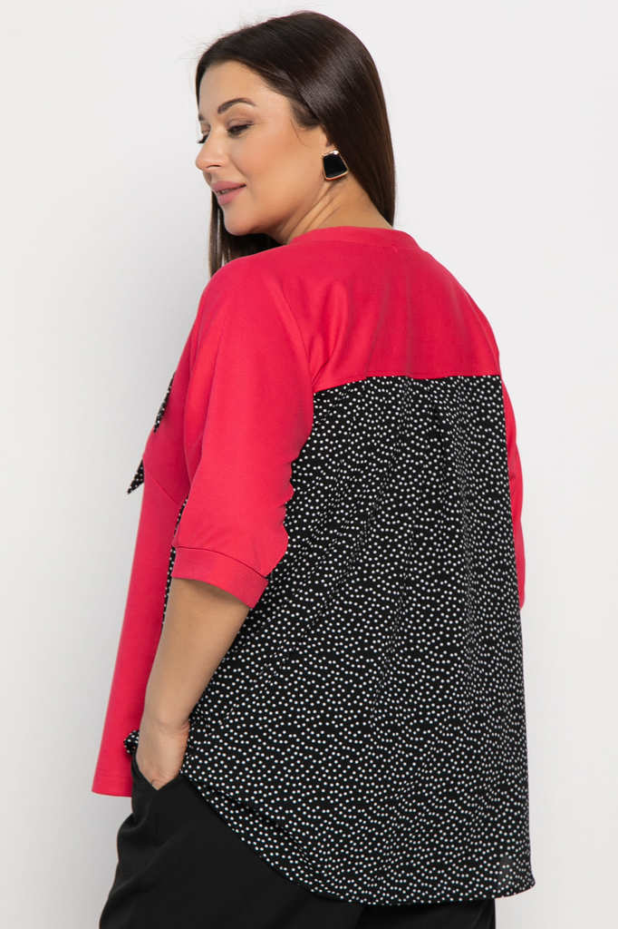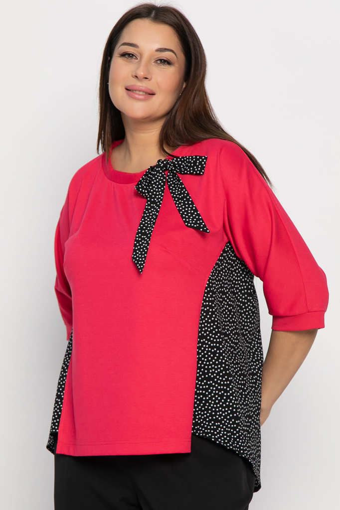 Состав : 95% полиэстер, 5% эластан Материал : трикотаж и блузочный Цвет : розовый Принт : на блузочной ткани горох мелкий Силуэт : а-силуэт Карманы : отсутствуют Подкладка : отсутствует Вид застежки :... Показать описание без застёжки Декоративные элементы : бант Длина : 48 - 61 см,, 50 - 63 см,, 52 - 65 см,, 54 - 66 см,, 56 - 67 см,, 58 - 67 см Обхват груди : 48 - 100, 50 - 104, 52 - 108, 54 - 112, 56 - 116, 58 - 120 Обхват бёдер : 48 - 126, 50 - 130, 52 - 135, 54 - 140, 56 - 148, 58 - 154 Обхват талии : 48 - 105, 50 - 110, 52 - 116, 54 - 122, 56 - 130, 58 - 135 Дополнительные параметры размеров : 48 - длина рукава Отснято с брюками Б13889-33М Изящная блуза в малиново-черной гамме и элегантном А-силуэте станет прекрасным дополнением вашего гардероба. Эта модель, созданная из двух видов ткани, сочетает комфорт и утонченность. Передняя часть выполнена из трикотажа, а спинка имеет трикотажную планку, которая переходит во второй вид ткани со встречной складкой, придавая блузе уникальный вид. Цельнокроеные рукава заканчиваются манжетом из основной ткани, что добавляет образу завершенности. Завершающим акцентом служит бант вдоль горловины, придающий блузе романтичный и женственный характер. Эта блуза идеально подходит как для повседневных, так и для более торжественных образов. Внимание! Рекомендуем ориентироваться на размерную сетку и выбирать свой привычный размер, согласно размерной таблице. *Допуск отклонения длины при массовом производстве 1-3 см является нормой. Уход за изделием: Ручная стирка или стирка в машине при температуре до 30 °C, деликатный режим. Не использовать отбеливатели. Разрешена глажка при температуре до 110 °C. При глажке использовать специальную насадку на подошве утюга, гладить с паром. Не замачивать и не выжимать. Стирать изделие наизнанку, отдельно от других вещей.
