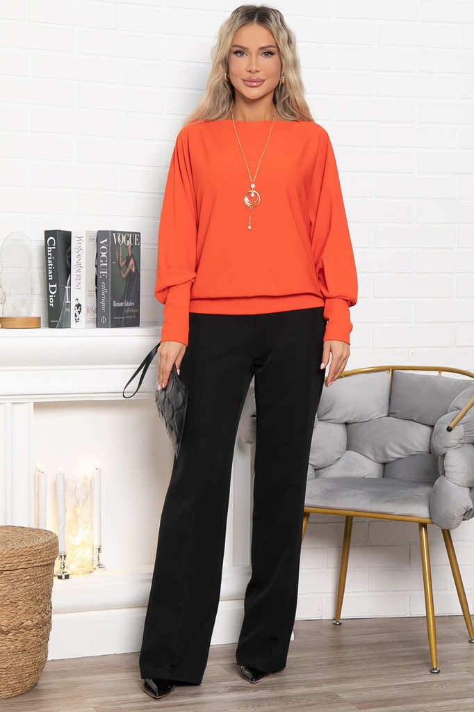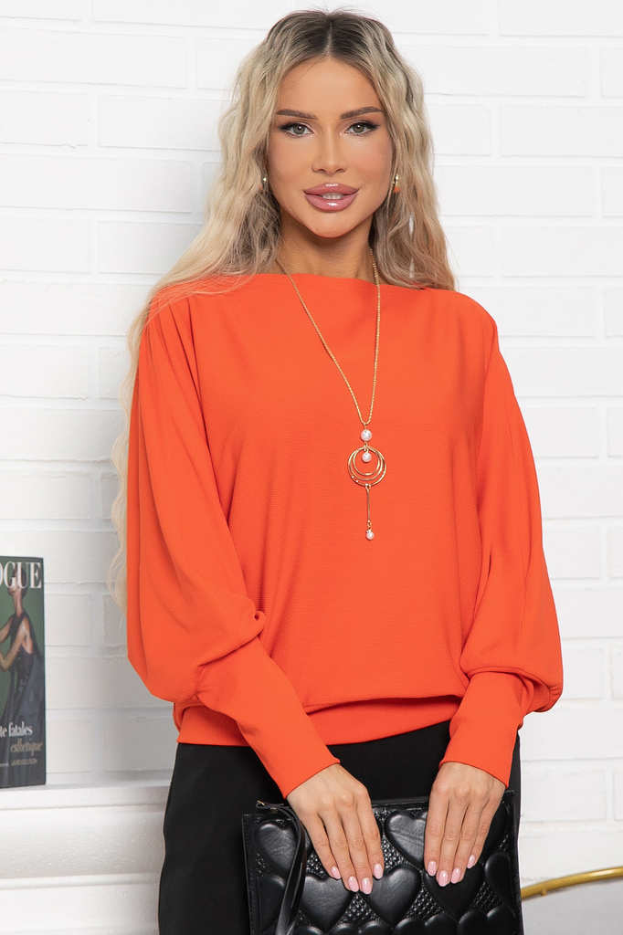 Состав : 65% полиэстер, 30% вискоза, 5% эластан Материал : трикотаж "лапша" в мелкий рубчик Цвет : оранжевый Принт : отсутствует Силуэт : свободный Карманы : отсутствуют Подкладка : отсутствует Вид за... Показать описаниестежки : без застёжки Декоративные элементы : подвеска в комплекте Длина : 44-46 (s) - 60 см,, 48-50 (м) - 60 см,, 52-54 (l) - 60 см Обхват груди : 44-46 (s) - 130, 48-50 (м) - 140, 52-54 (l) - 150 Обхват талии : 44-46 (s) - 120, 48-50 (м) - 130, 52-54 (l) - 140 Дополнительные параметры размеров : 44-46 (s) - длина рукава Отснято с брюками Б13889-33М Великолепная трикотажная блуза сочетает в себе комфорт и утонченность. Овальный вырез горловины и цельнокроеные рукава «летучая мышь» придают ей уникальный вид. Высокий манжет по низу рукавов добавляет изысканности. Эта блуза отлично сочетается с юбками, брюками и джинсами любого фасона, создавая разнообразные модные образы. В комплекте идет подвеска, которая станет ярким акцентом и подчеркнет вашу индивидуальность. Внимание! Рекомендуем ориентироваться на размерную сетку и выбирать свой привычный размер, согласно размерной таблице. *Допуск отклонения длины при массовом производстве 1-3 см является нормой. Уход за изделием: Ручная стирка или стирка в машине при температуре до 30 °C, деликатный режим. Не использовать отбеливатели. Разрешена глажка при температуре до 110 °C. При глажке использовать специальную насадку на подошве утюга, гладить с паром. Не замачивать и не выжимать. Стирать изделие наизнанку, отдельно от других вещей.
