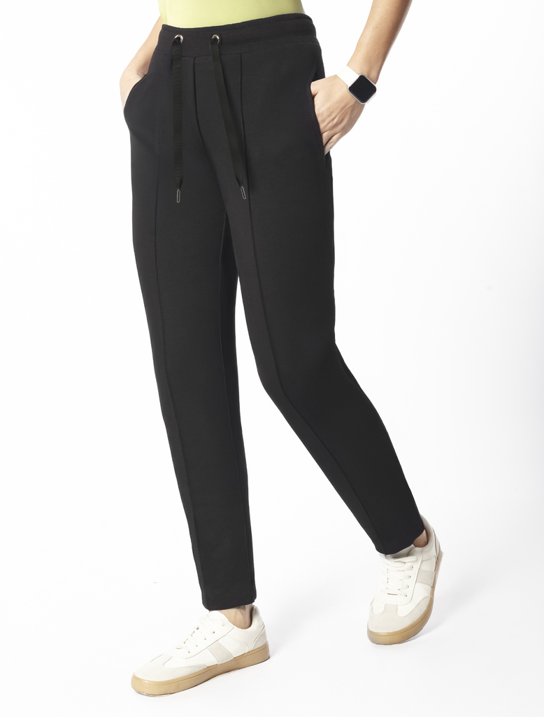 Состав: 95%Хлопок 5%ПУ Плотность: 240 Г/м2 Брюки выполнены из футера двухнитки с эластаном. Модель зауженная к низу дополнена карманами и эластичным поясом с фактурой в рубчик. В пояс вставлен плоский... Показать описание хлопковый шнур в тон изделия с серебристыми наконечниками. Изделие дополнено металлическим логотипом бренда. Сочетается в костюме с жакетом D49.078, джемпером D49.079, D49.080 и футболкой D49.081