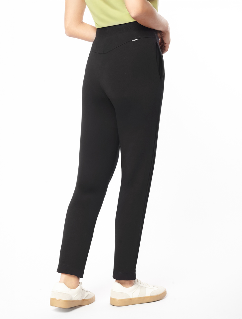 Состав: 95%Хлопок 5%ПУ Плотность: 240 Г/м2 Параметры модели на первом фото: Рост 172, бюст 88, талия 64, бедра 88 Брюки выполнены из футера двухнитки с эластаном. Модель зауженная к низу дополнена кар... Показать описаниеманами и эластичным поясом с фактурой в рубчик. В пояс вставлен плоский хлопковый шнур в тон изделия с серебристыми наконечниками. Изделие дополнено металлическим логотипом бренда. Сочетается в костюме с жакетом D49.078, джемпером D49.079, D49.080 и футболкой D49.081