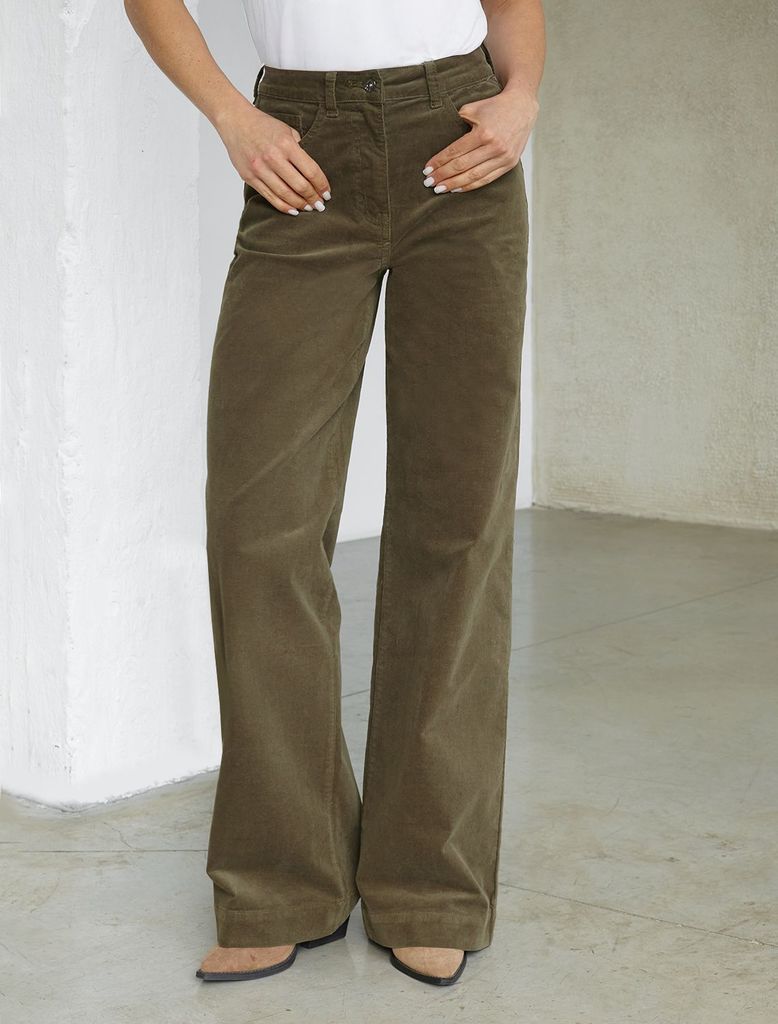 Состав: 98%Хлопок 2%ПУ Плотность: 310 Г/м2 Размер товара на первом фото: 42 Брюки свободного кроя «трубы» выполнены из мягкого хлопкового микро-вельвета с добавлением эластана. Изделие комфортно садит... Показать описаниеся по фигуре и не сковывает движения. Модель с пятью карманами, как у джинсов дополнена высококачественной фурнитурой с фирменным логотипом бренда. Идеально впишутся в повседневный образ, со свитером крупной вязки, курткой-косухой, ботинками на грубой подошве, челси и казаками.