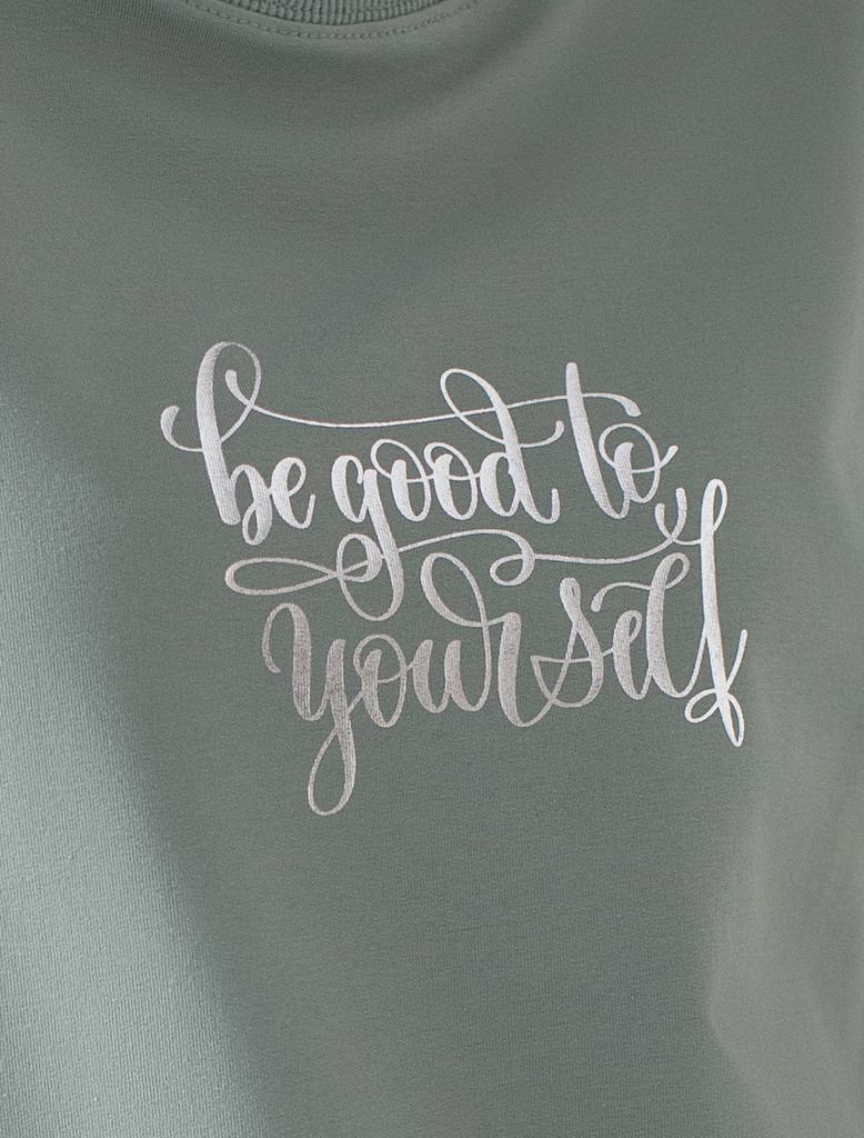 Состав: 95%Хлопок 5%ПУ Плотность: 240 Г/м2 Стильный свитшот оливкого цвета из премиального футера двухнитки с эластаном сочетает в себе комфорт и оригинальность. Джемпер выполнен из натурального хлопк... Показать описаниеа, который обеспечивает мягкость и дышащие свойства ткани. Нежный материал дарит ощущение уюта в любое время года, а премиальное качество изготовления гарантирует долговечность и сохранение формы после множества стирок. Особенность изделия — спущенная линия плеча и аккуратные разрезы, которые добавляют современный акцент и делают образ более выразительным. Принт в виде надписи придает индивидуальность, позволяя выделиться без лишней вычурности. Перевод надписи Be good Be yourself - Будь хорошей, будь собой. Дополнен металлическим логотипом бренда. Представлена широкая размерная линейка, включая маленькие и большие размеры, что позволяет подобрать идеальный вариант для разной фигуры и роста. Этот уютный свитшот отлично подходит для повседневной носки благодаря своей комфортной посадке и мягкой текстуре. Он станет универсальным элементом гардероба, легко сочетающимся с различными стилями одежды. Свободный джемпер из футера станет отличным выбором для повседневной носки и активного отдыха, обеспечивая стильный внешний вид и удобство в любое время года.