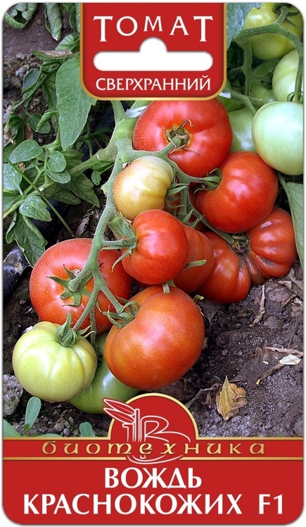 Гибрид ВОЖДЬ КРАСНОКОЖИХ F1 детерминантного типа, куст обыкновенный. Первая кисть закладывается над 5-6 листом, последующие кисти - через один лист. Плод округлый, слегка уплощенный, без зеленого пятн... Показать описаниеа у плодоножки, в технической спелости светло-зеленого, почти белого цвета, в биологической - красного, весом 120-150 г. Предназначен для выращивания в открытом грунте и пленочных теплицах. Посев на рассаду, в северных регионах, необходимо проводить не раньше первой декады апреля (возможно и в более поздние сроки). Высадка рассады в грунт - первая декада июня. Гибрид хорошо переносит кратковременные похолодания. Урожайность в пленочной теплице 9-11 кг/кв.м.