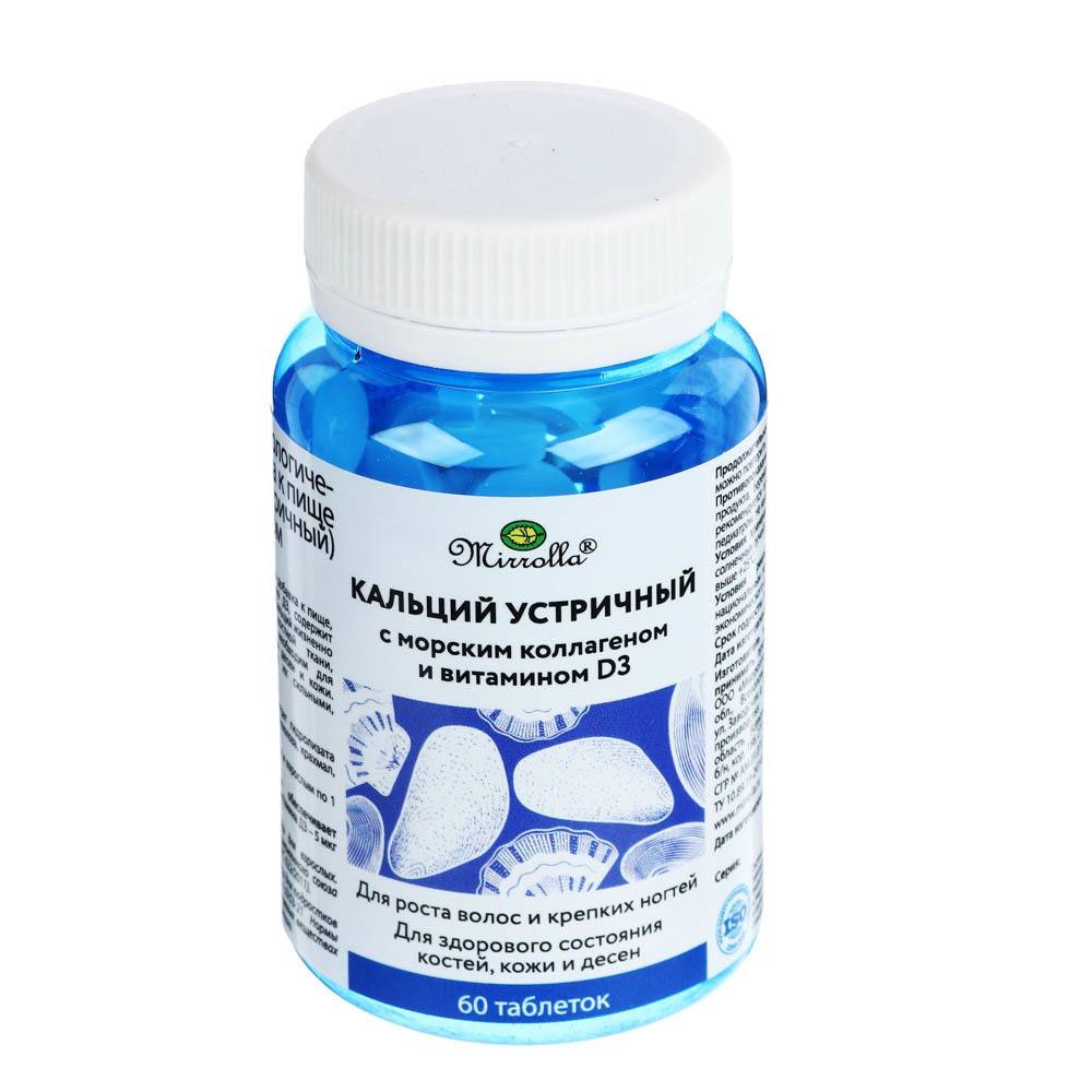 БАД "Кальций цитрат (устричный) с морским коллагеном и витамином Д3",Мирролла,60табл по 500мгВопросы по товару