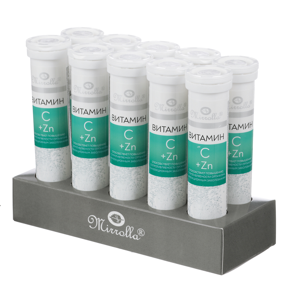 БАД от «Мирролла» Витамин С 500 мг + цинк 25 мг в виде шипучих таблеток применяется для укрепления иммунитета и повышения сопротивляемости организма к сезонным инфекционным заболеваниям. Цинк способст... Показать описаниевует регенерации кожных покровов, нормализации деятельности нервной системы, положительно влияет на репродуктивную функцию. Таблетки быстро растворяются в воде. 20 штук в упаковке.