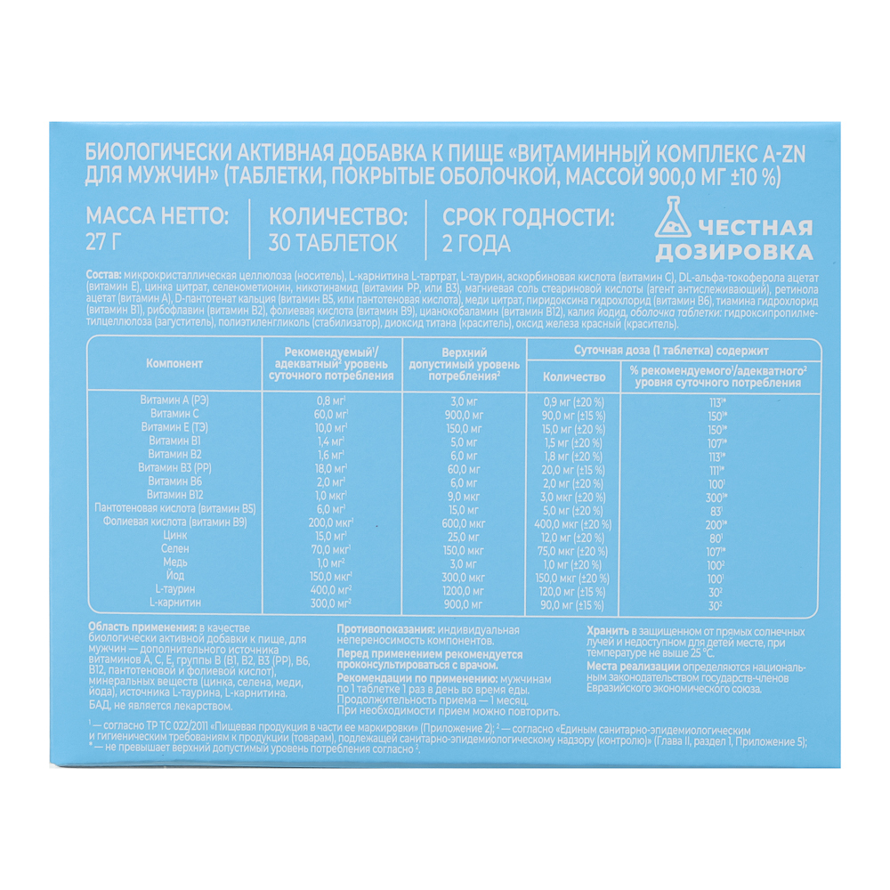 БАД Витаминный комплекс мужской A-Zn Витамир Vitaworld, 30таблВопросы по товару