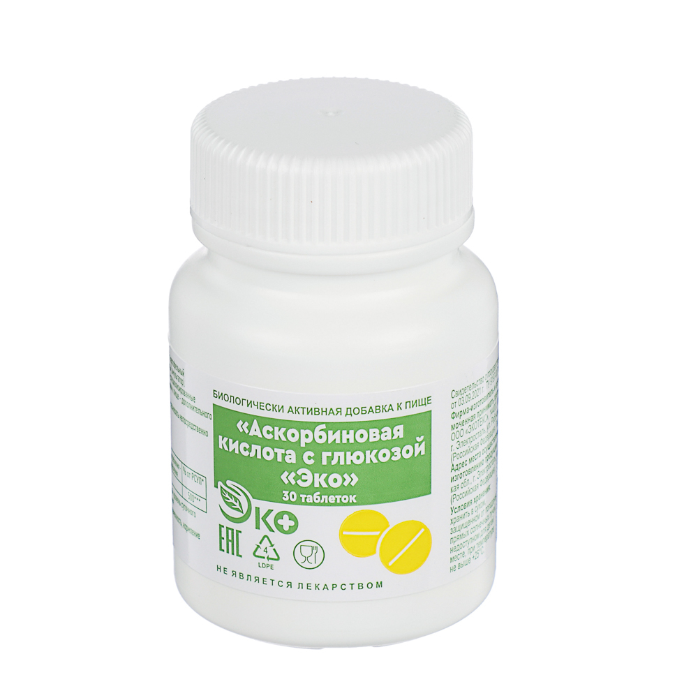БАД Аскорбиновая кислота с глюкозой "ЭКО" ,30табл по 1гр, банкаВопросы по товару