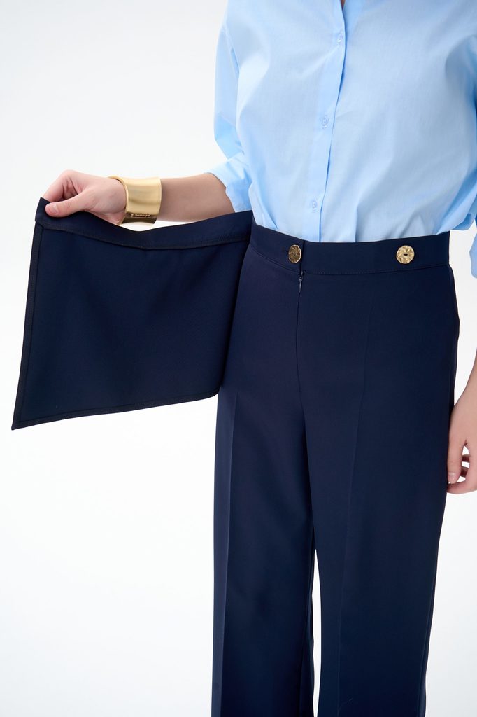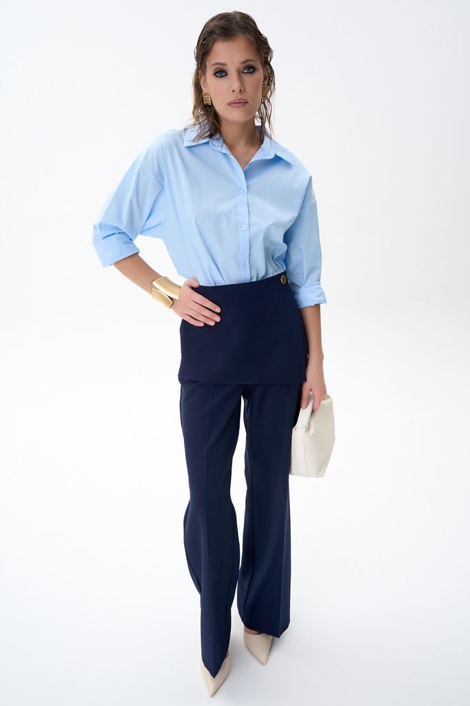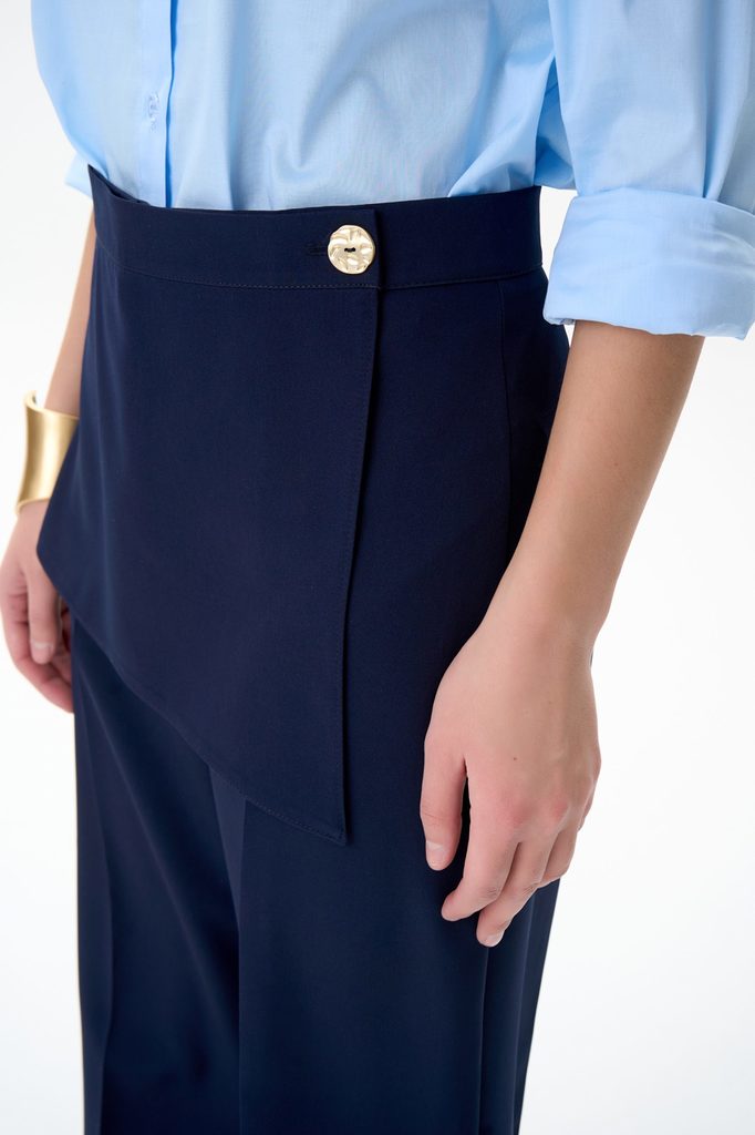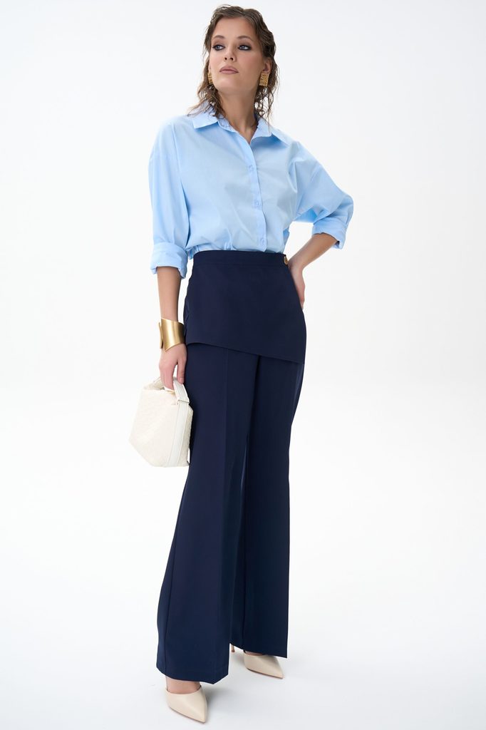 Состав: П/э – 60%, вискоза – 30%, эластан – 10% Описание Оригинальные брюки с высокой посадкой расклешенного силуэта. Особенность этой модели – изысканный асимметричный запах спереди. Брюки из прочной... Показать описание ткани с добавлением вискозы застегиваются в левом боковом шве на потайную тесьму-молнию. Идеально сочетаются с пиджаком «Тайрис» из той же ткани — вместе они создают завершённый, элегантный костюмный образ. Материал: костюмный средней плотности Сезон: демисезон Посадка: Высокая Вид застежки:молния Декоративные элементы запах Карманы: есть