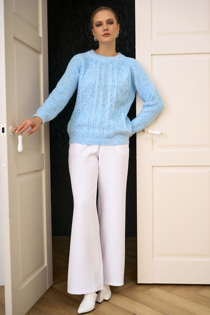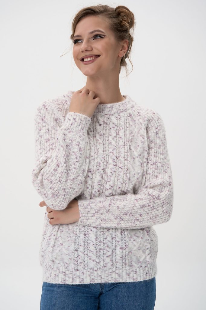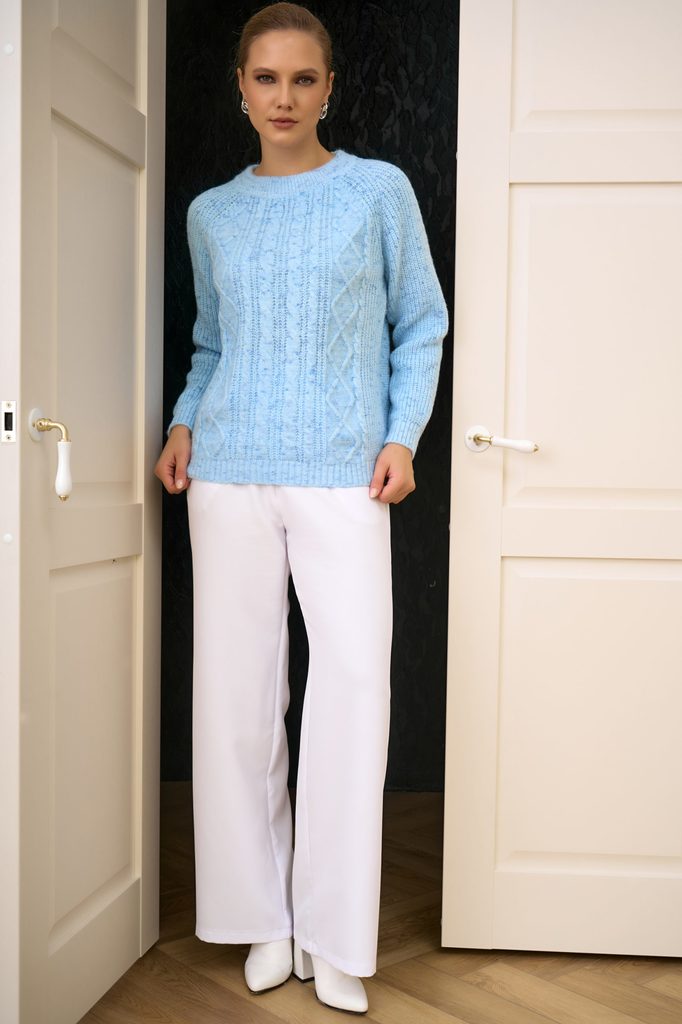 Состав: Хлопок – 50%, акрил – 50% Описание Нежный, стильный и невероятно уютный — свитер «Джойс» станет вашим любимым элементом гардероба. Он сочетает комфорт и лёгкость, подчёркивает фигуру и легко в... Показать описаниеписывается в любой образ — от повседневного до офисного. Материал: смесь хлопка и акрила (50/50) — мягкий, дышащий, сохраняет форму после стирки. Классический прямой силуэт с округлой горловиной и длинными рукавами. Спущенная линия плеча придаёт модели лёгкость и непринуждённость. Минималистичный дизайн без лишних украшений — универсален и легко сочетается с аксессуарами. Манжеты и низ аккуратно обработаны, сохраняют форму. Рост модели: 175 см Параметры модели: 95-65-100