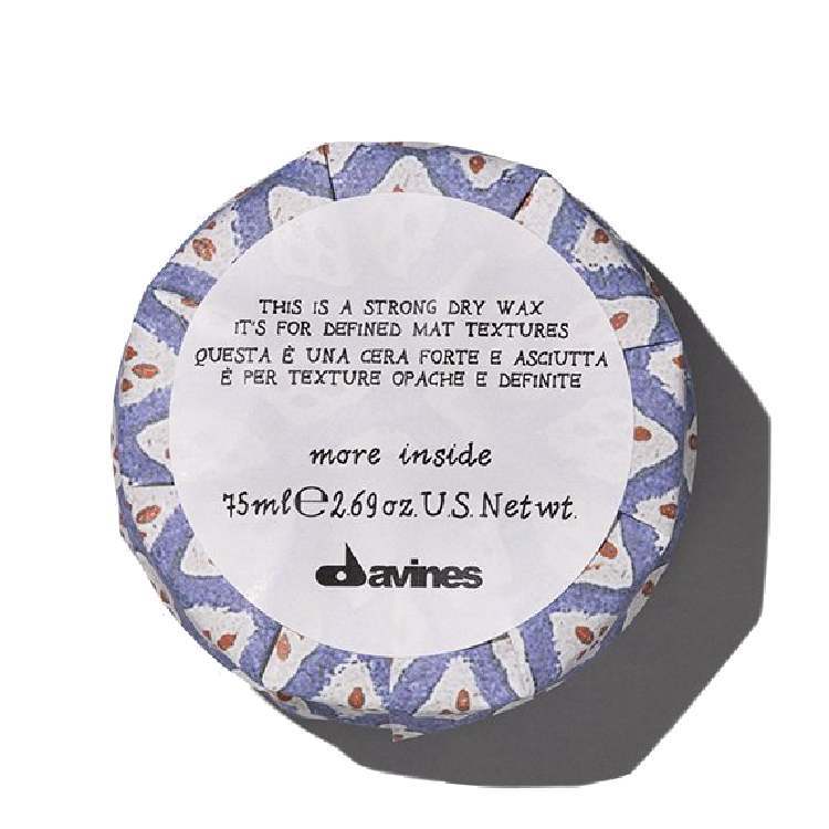 Линейка бренда: More Inside. Тип стайлинга: Воск. Тип волос: Все типы волос. Бренд: DAVINES. Описание. Сухой воск обладает фактором экстра-увлажнения и фактором отсутствия хлопьев благодаря каолину, п... Показать описаниеорошку из осадочной горной породы, и пчелиному воску натурального происхождения, используемых для моделирующей способности и поддержки стайлинга. Воск идеален для создания креативных причесок. Увлажняет от самых корней, оставляя волосы матовыми, без бликов. Уровень фиксации: сильная фиксация. Объем: 75 мл. Воск наносится на сухие волосы, разделенные на секции. Далее прядям придается желаемая форма. Подробное описание: https://beautyservice.ru/catalog/dlya_volos/ukladka/vosk_sukhoy_davines_more_inside_dlya_teksturnykh_matovykh_aktsentov_75_ml/