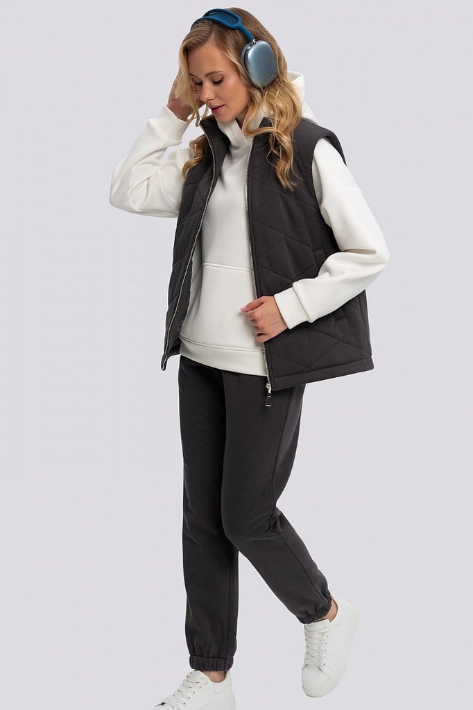 Теплый спортивный костюм женский с жилеткой на молнии - это комплект, представляющий собой идеальное сочетание стиля и функциональности для активного образа жизни и спокойных прогулок на свежем воздух... Показать описаниее. Он создан для девушек и женщин, предпочитающих комфорт и тепло в прохладное и холодное время года. Теплый костюм выполнен из плотного, качественного футера с мягким начёсом внутри, приятным к телу. Это делает его идеальным выбором для весеннего, осеннего и зимнего времени года. Комплект включает в себя худи с капюшоном, брюки, стёганную утеплённую жилетку на молнии. На рукавах и брюках есть фиксирующие манжеты на резинке, которые позволяют сохранять тепло. Декоративные элементы в виде стёжки ромб придают костюму уникальный и запоминающийся вид. Костюм может легко сочетаться с вашей повседневной одеждой и спортивной обувью, создавая гармоничный и стильный образ. Он станет отличным дополнением к вашему гардеробу, сочетая в себе высокое качество, современный дизайн и максимальный комфорт. Трикотаж утепленный на флисе, состав: 75% хлопок, 20% полиэстер, 5 % спандекс. Жилетка на утеплителе термофин, плотностью 60г/м.
