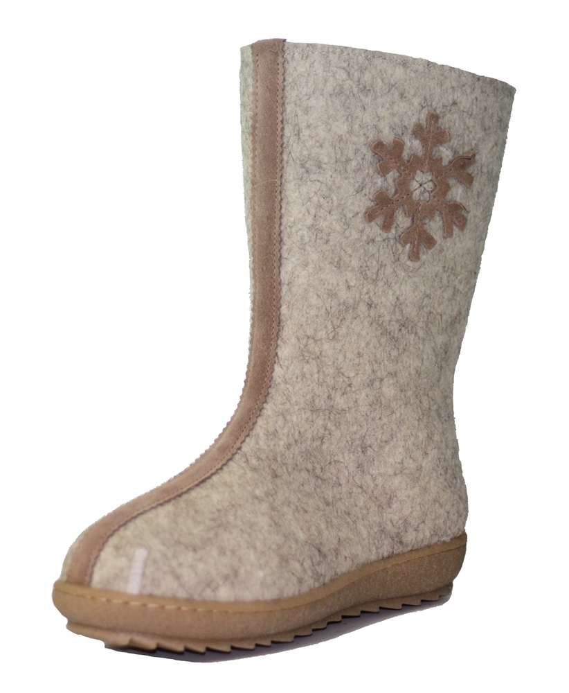 Сапоги Снежинка - повседневная зимняя обувь изготовлена из тонкошерстного войлока (100% натуральная овечья шерсть). Внутри обувь продублирована ворсовым трикотажем- содержание шерсти - 50%. Модель С-8... Показать описание0 Снежинка имеет отделку: декоративные полоски и аппликацию - снежинку из натуральной кожи - спилок-велюра. Подкладка из мехового трикотажа и дополнительная вкладная стелька из войлока, которая минимизирует тепловые потери через подошу, тем самым сохранит ноги в тепле. Подошва ТЭП с протектором обеспечит хорошую амортизацию при ходьбе и надежное сцепление.