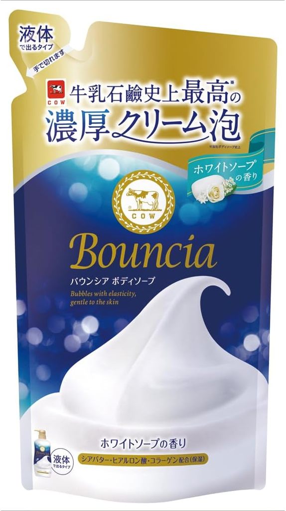 COW Гель для душа BOUNCIA Сливочный с молочными протеинами и шелком, аромат свежести, 360 мл. сменная упаковка