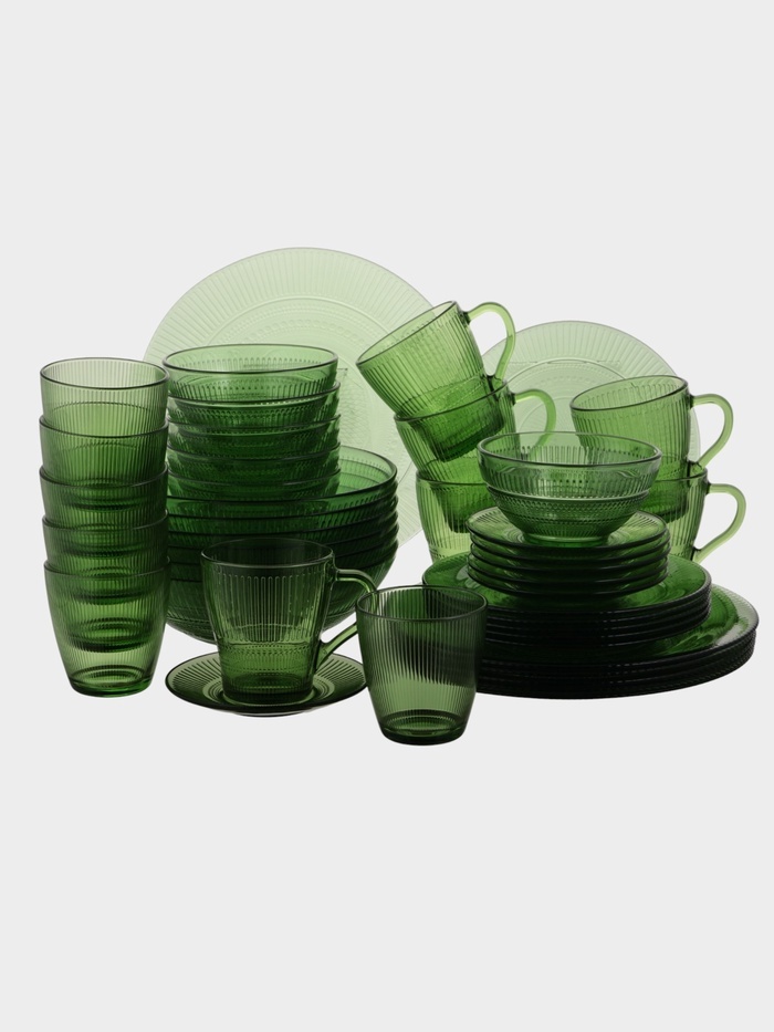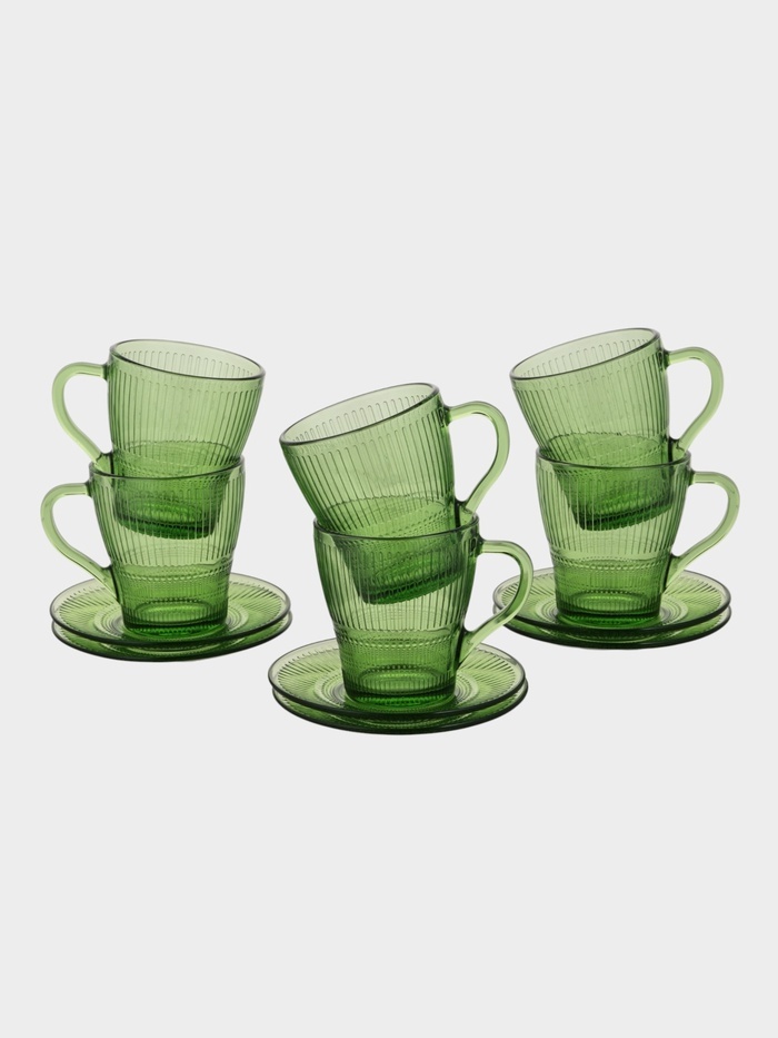 Чайный сервиз «Луиз» от Luminarc — практичный выбор для ежедневного чаепития и гостеприимного стола. Преимущества * Полная комплектация на шесть человек: 6 кружек и 6 блюдец. * Кружка удобного объёма ... Показать описание280 мл. * Материал устойчив к высоким температурам. * Однотонный зелёный цвет сохраняет нейтральность образа, не отвлекая от содержимого кружки. * Поверхность с элегантным рельефом придает набору тактильную выразительность и уверенно лежит в руке. Комплектация * Кружка 280 мл – 6 шт;Блюдце – 6 шт. Дополнительно Можно мыть в посудомоечной машине и использовать в СВЧ-печи