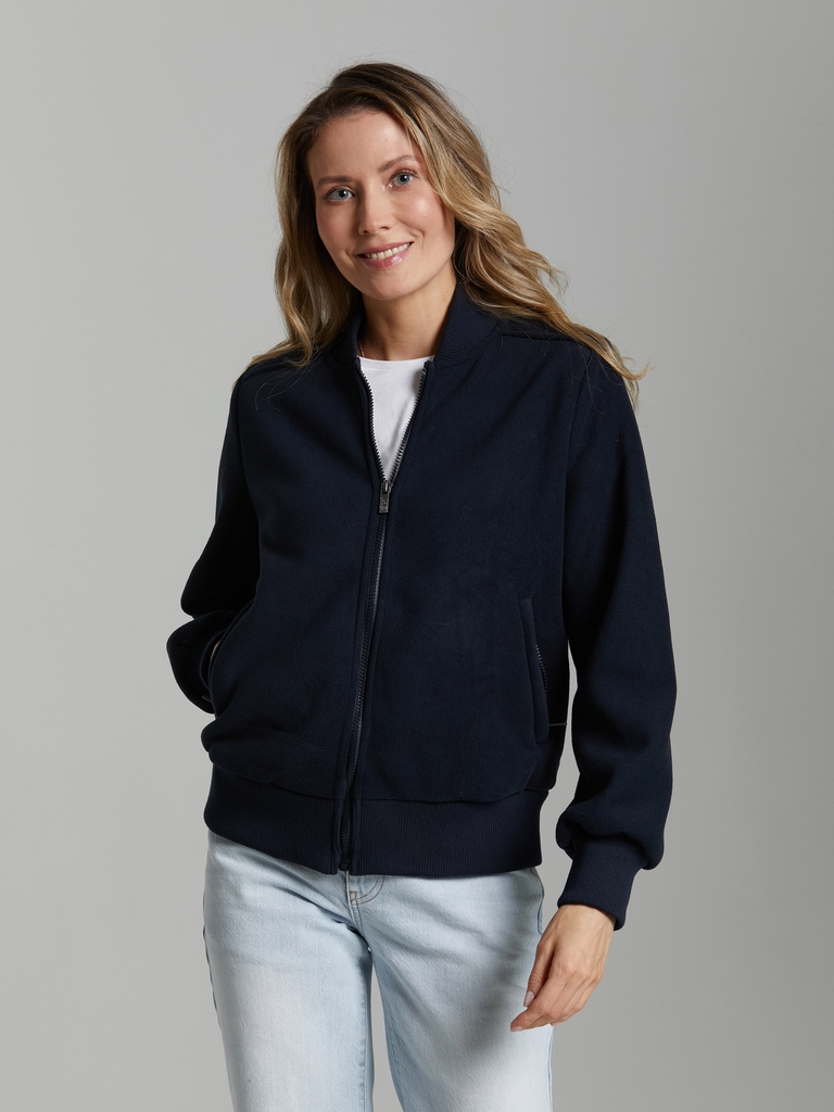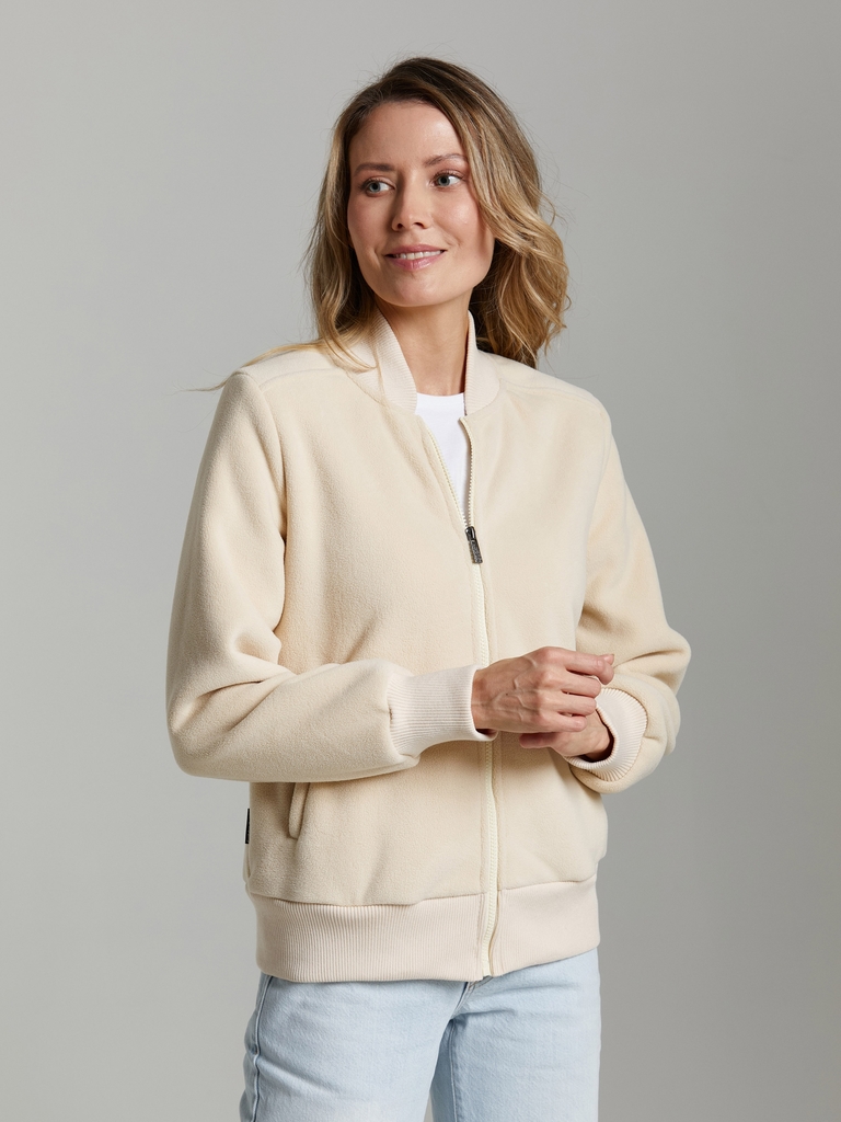 Тип материала: флис ? Флис — объемное синтетическое трикотажное полотно с двухсторонним начесом. Изделия из флиса очень легкие, «дышащие», эластичные и прочные. Слабо впитывают воду и быстро сохнут. Б... Показать описаниелагодаря большому количеству воздуха, содержащемуся в так называемых воздушных камерах, флис прекрасно удерживает тепло, сохраняя теплозащитные свойства даже в намокшем состоянии. Идеален для осенней и зимней одежды, спортивной и туристической экипировок. Толстовка-бомбер женская из плотного флиса, дублированного мехом. Застегивается на молнию. Воротник - стойка из эластичного трикотажа. Низ куртки заужен трикотажным поясом. Рукава втачные, низы рукавов на трикотажном манжете. Карманы прорезные, с молниями На левом рукаве шеврон с фирменным логотипом.