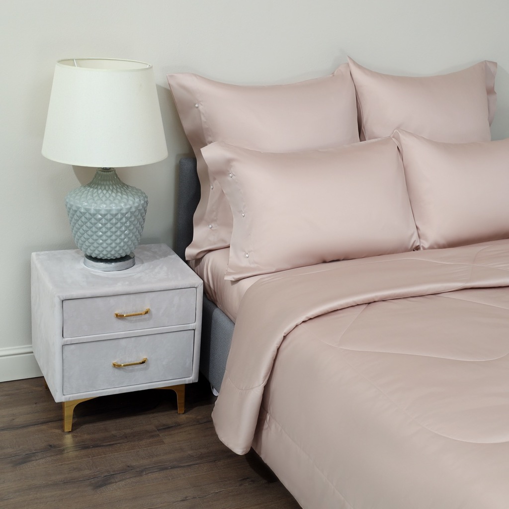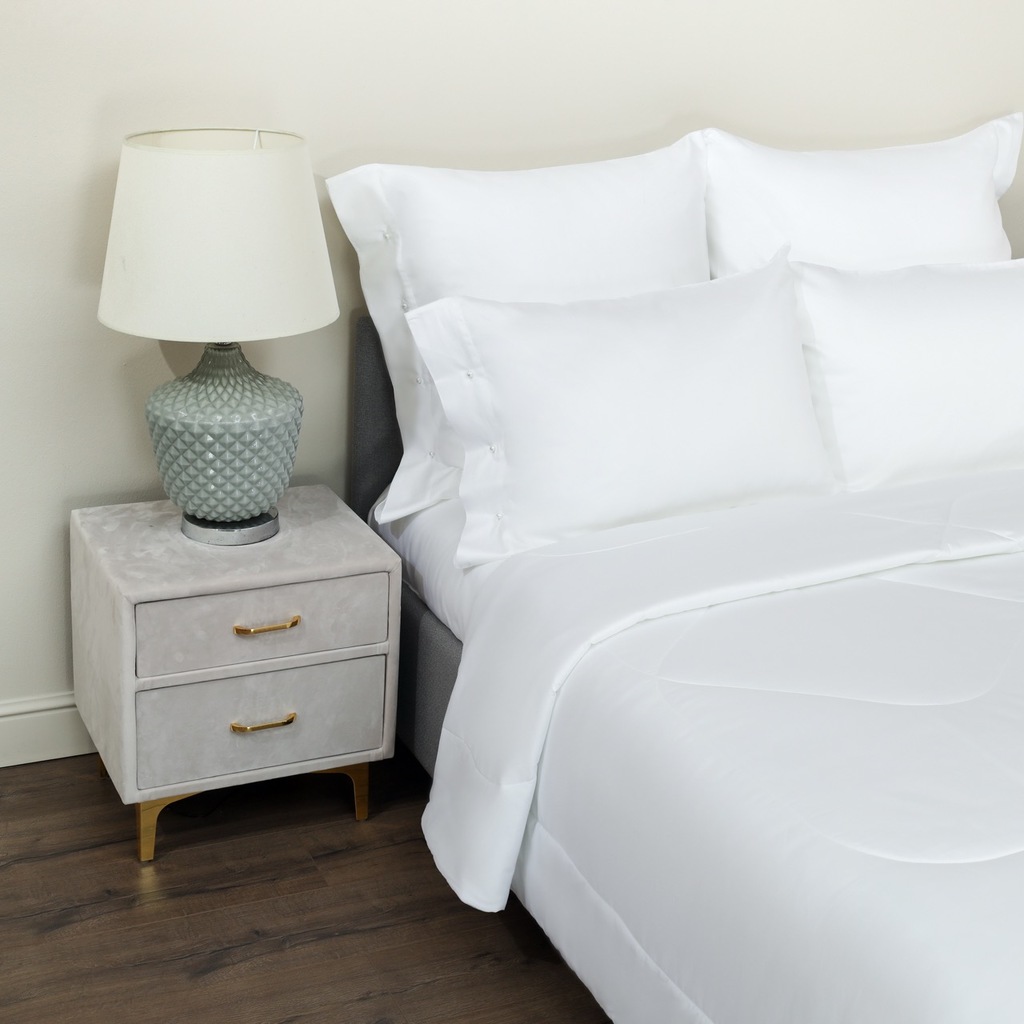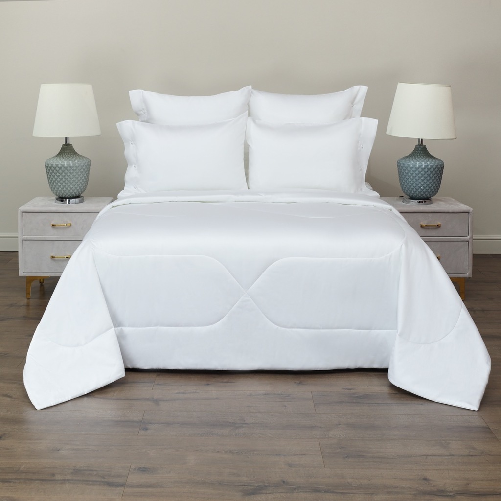 Комплект с одеялом Одеяло 200х220 см (1шт) Простыня 240х260 см (1шт) Наволочка 50х70 см (2шт), 70х70 см (2шт) Ткань: макосатин; Состав ткани: 100% хлопок; Плотность наполнителя: 160гр/м; Плотность тка... Показать описаниени: 300тс.; Упаковка: подарочная коробка Уход: Стирка при 30 °С. Особенности: наволочки с клапаном 7см с одной стороны на пуговках жемчуг
