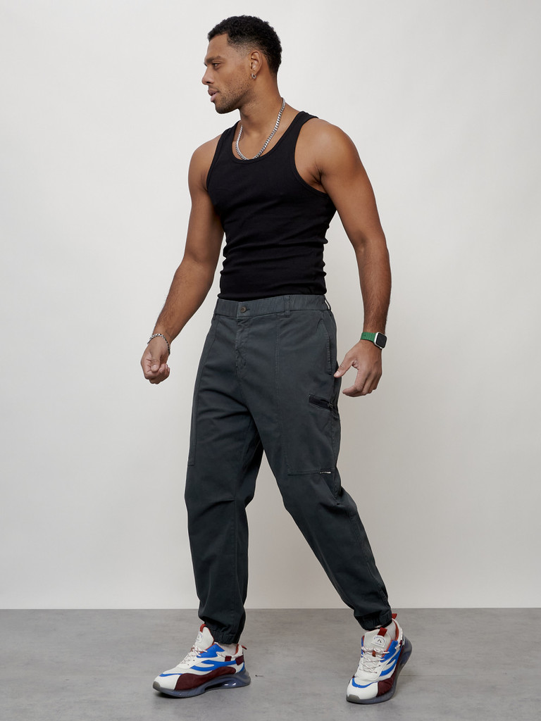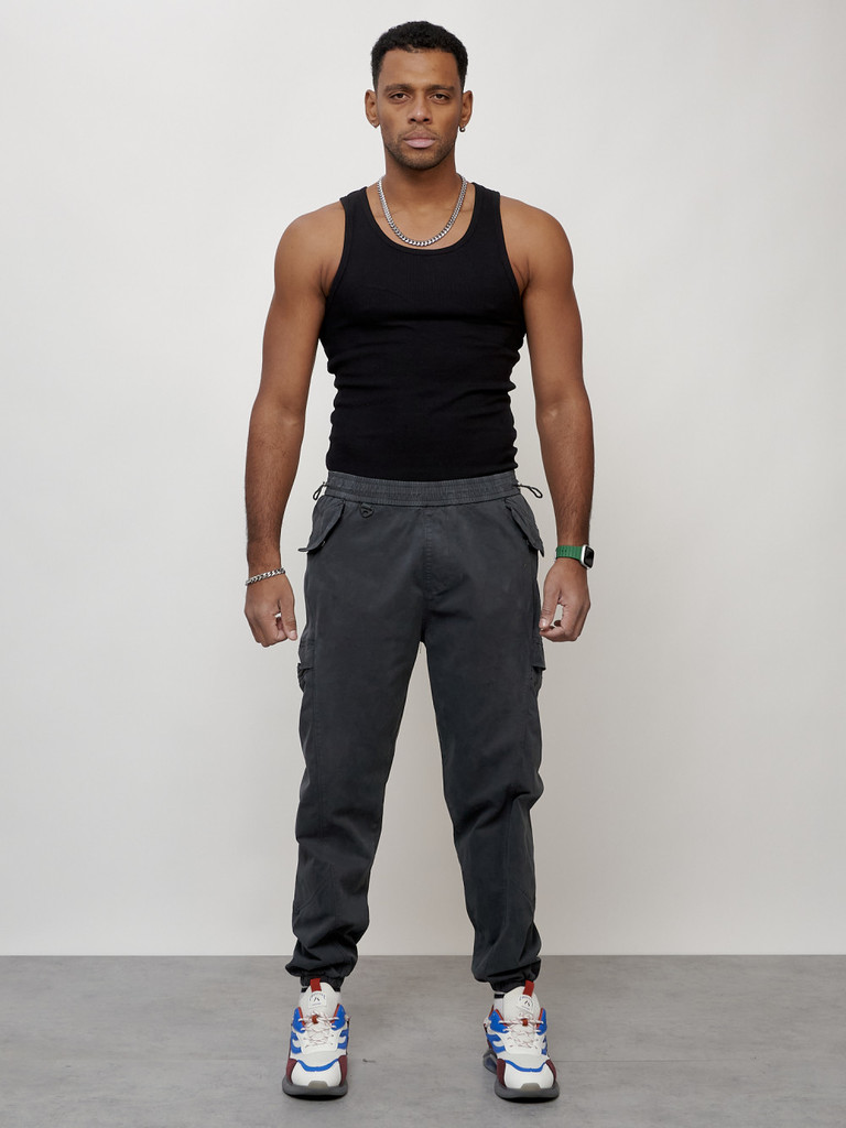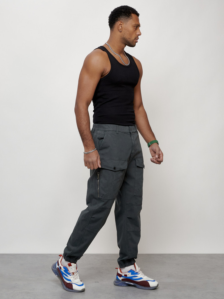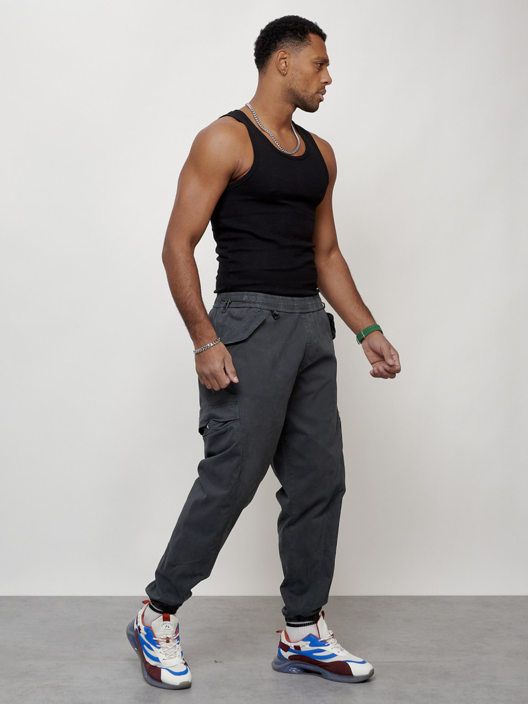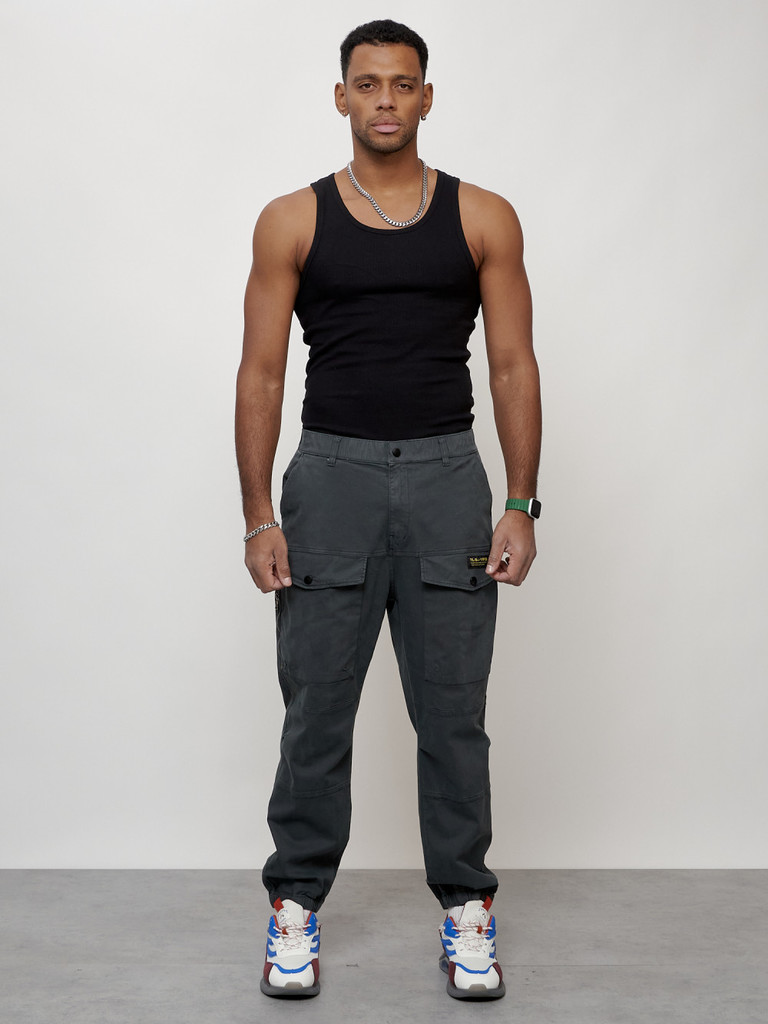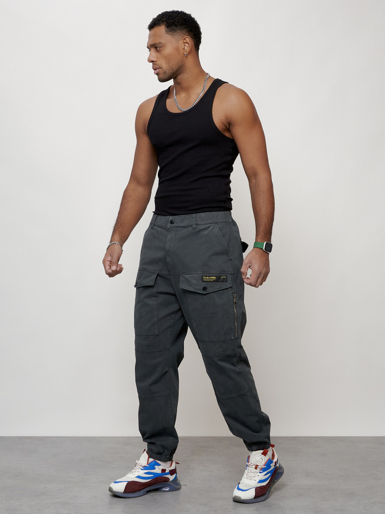 Джинсы карго мужские с накладными карманами темно-серого цвета 2417TCВопросы по товару