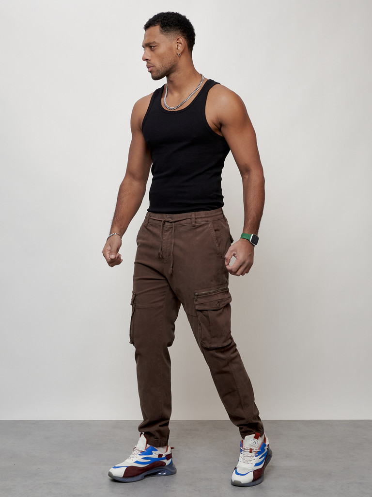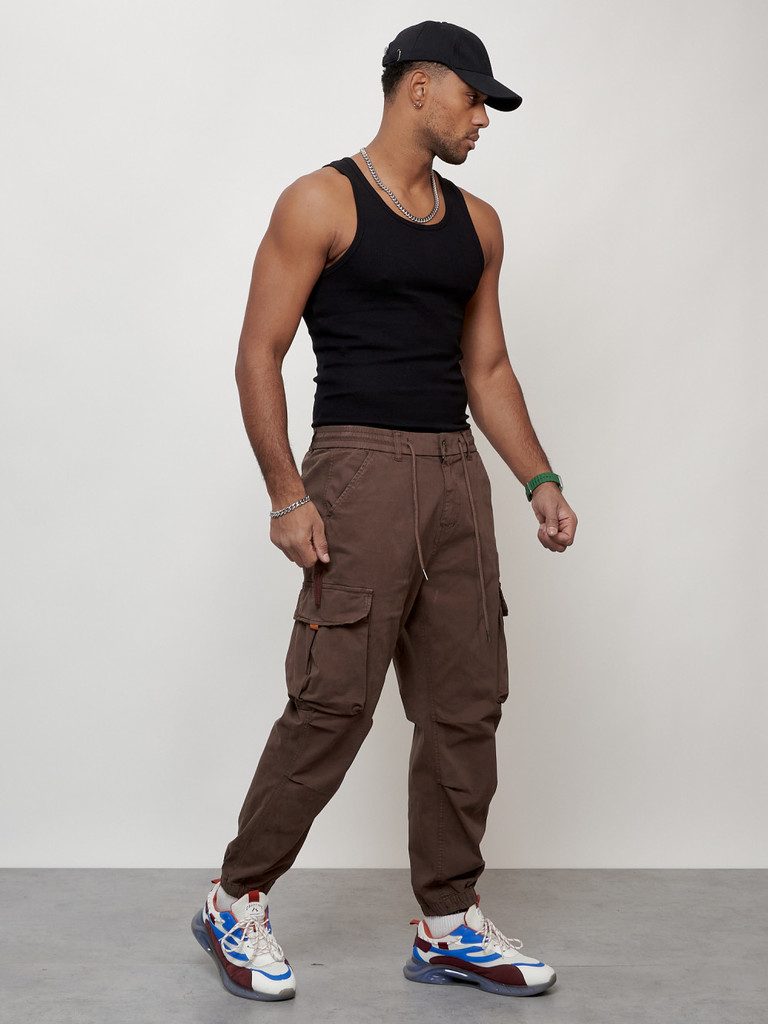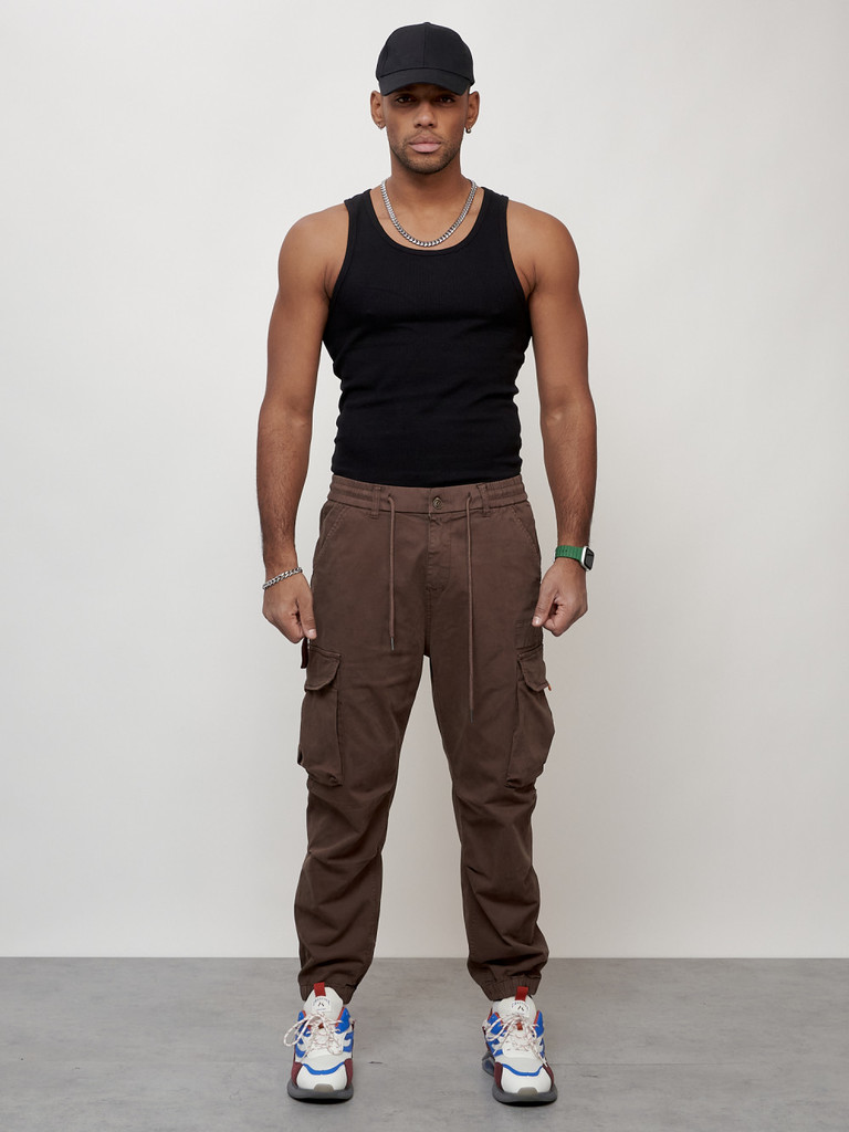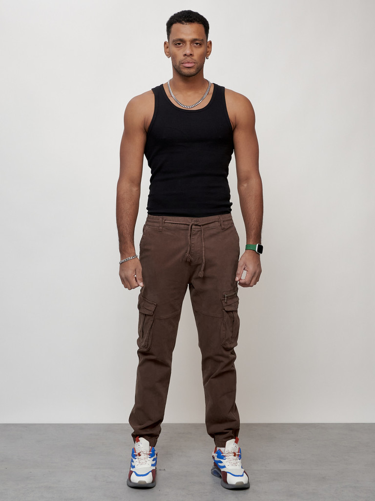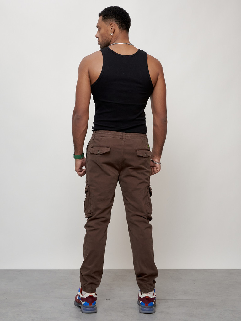 Джинсы карго мужские с накладными карманами коричневого цвета 2428KВопросы по товару