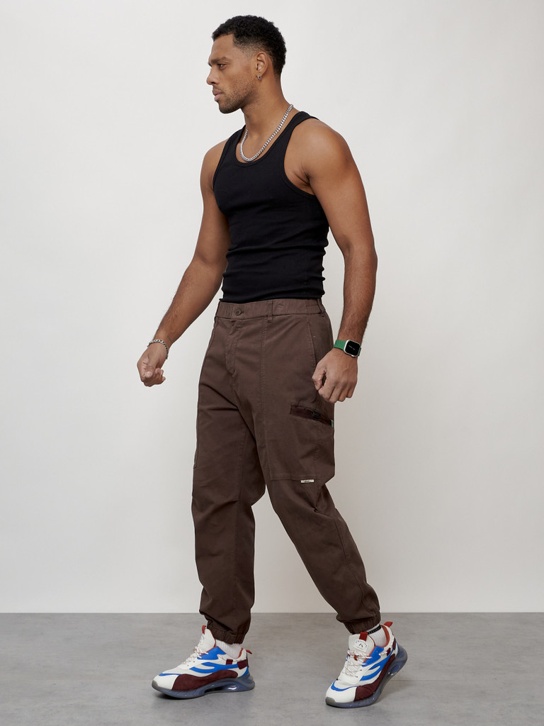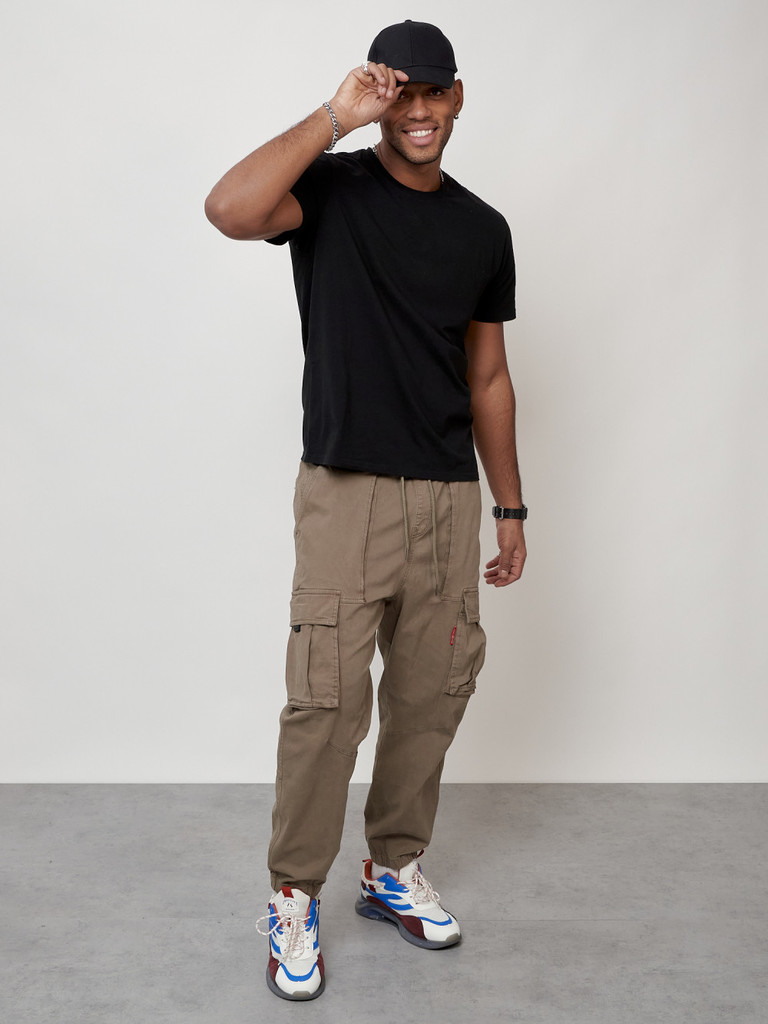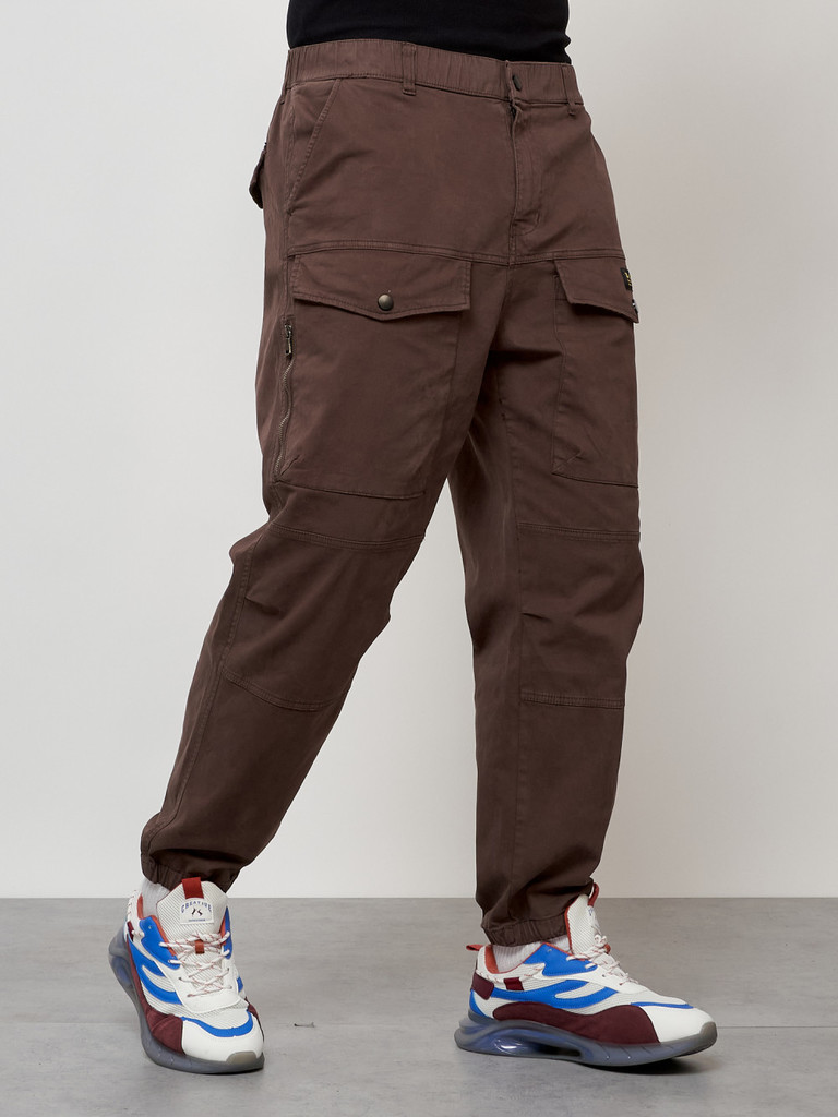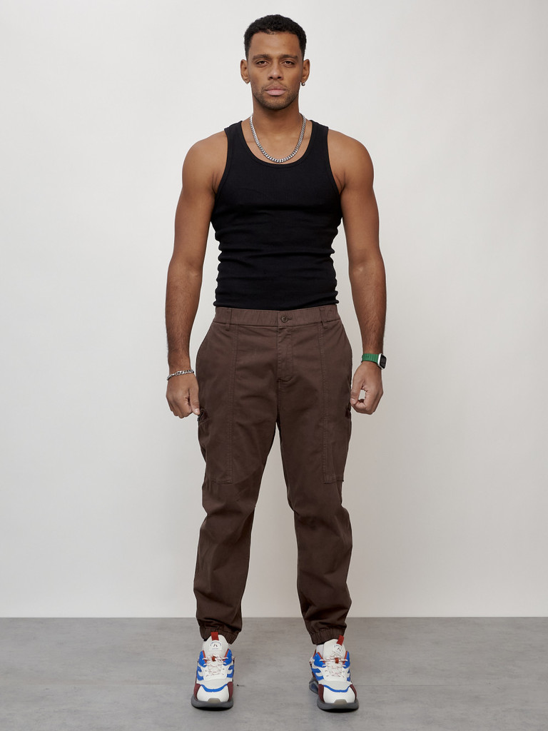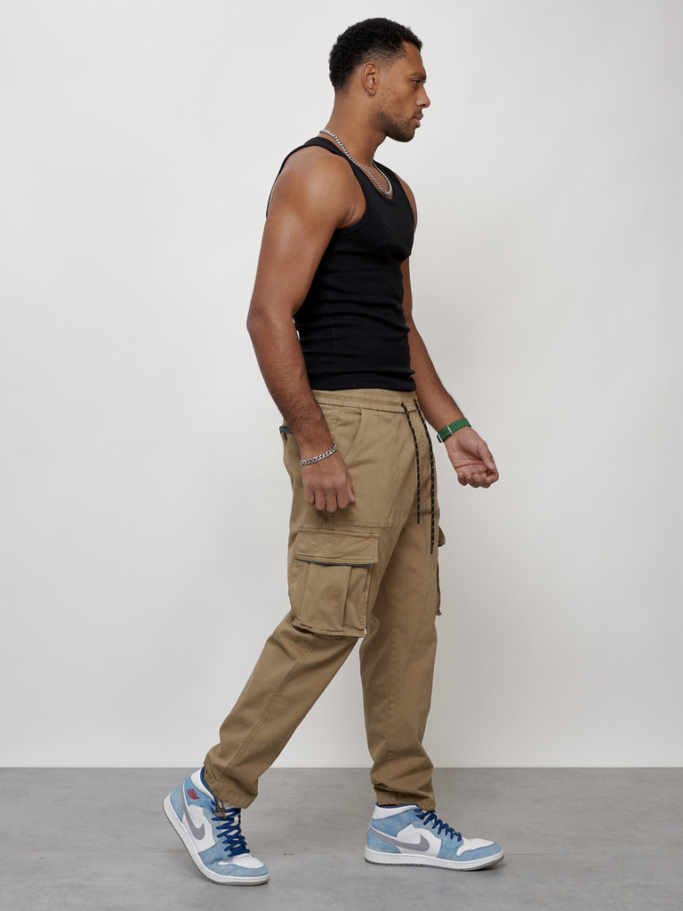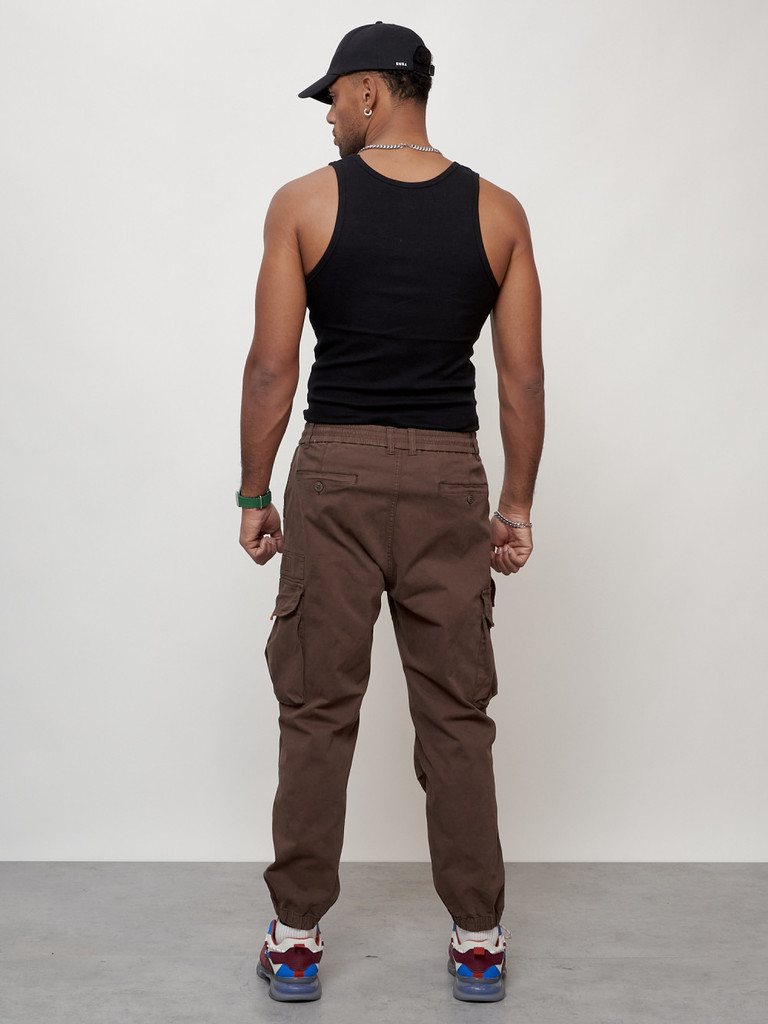 Джинсы карго мужские с накладными карманами коричневого цвета 2428KВопросы по товару