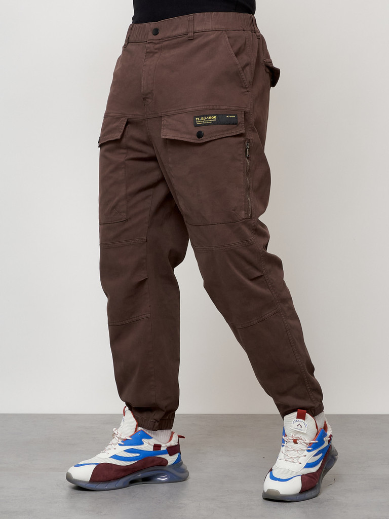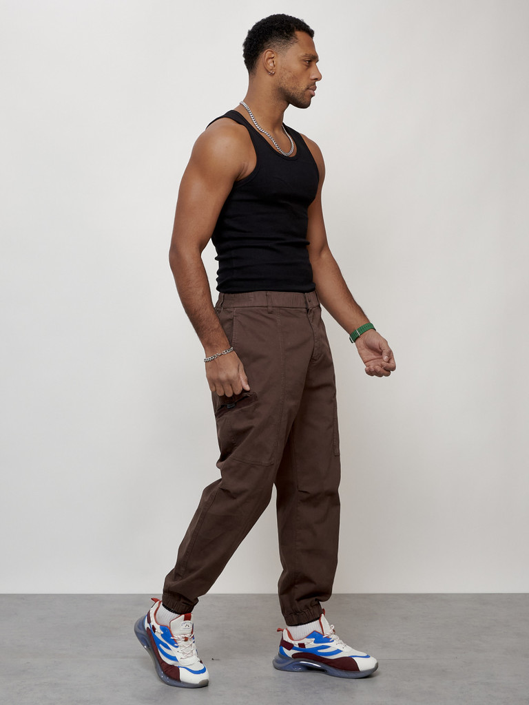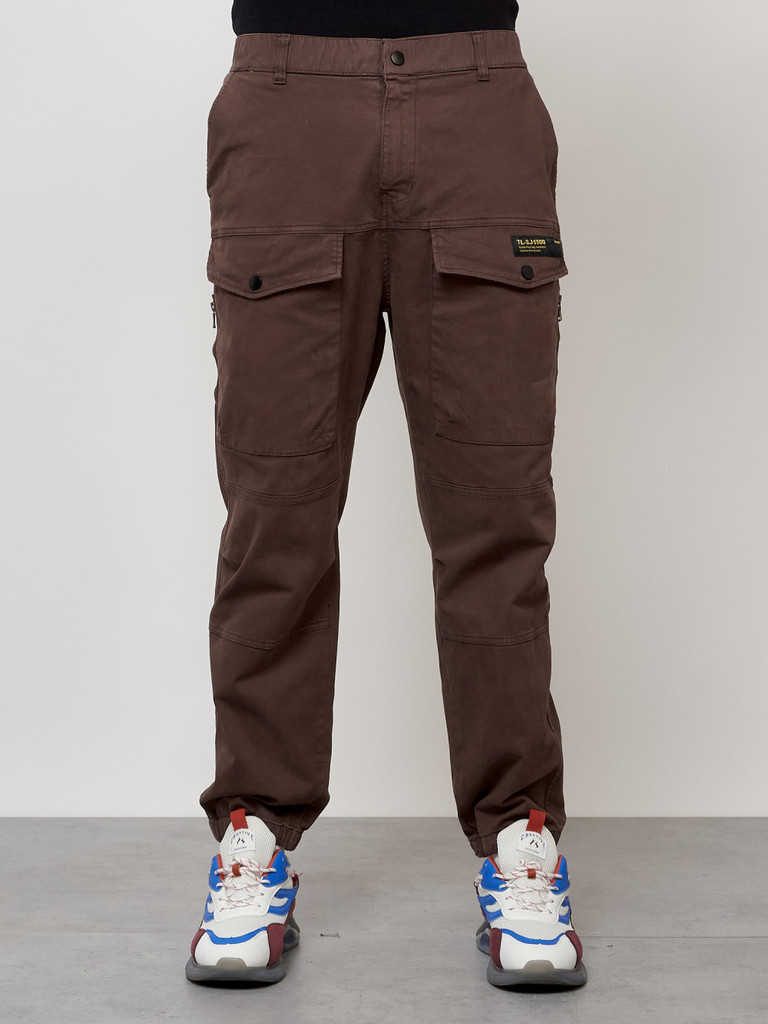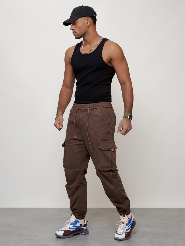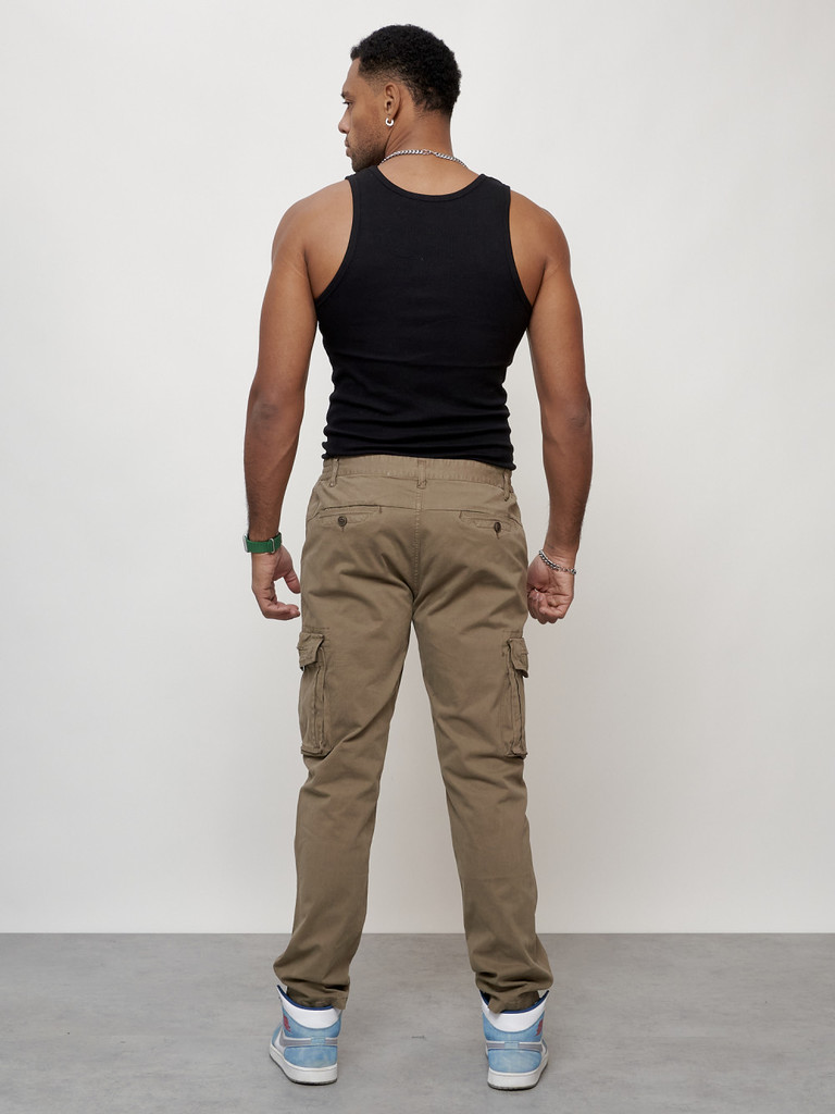 Джинсы карго мужские с накладными карманами коричневого цвета 2428KВопросы по товару