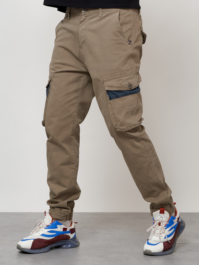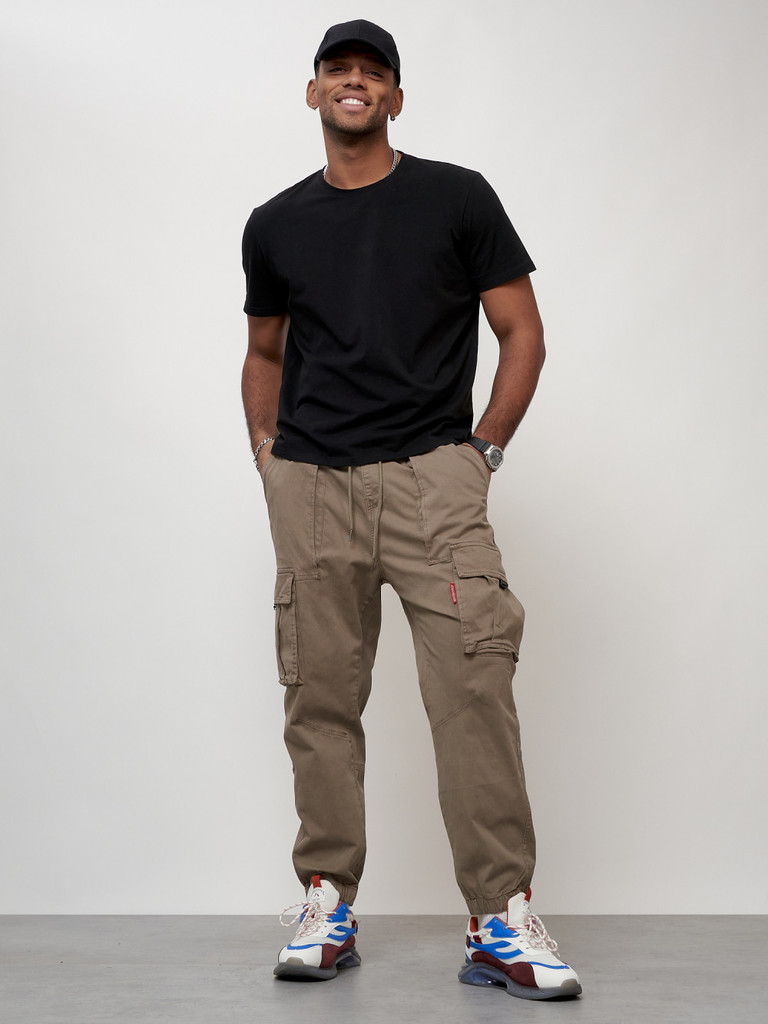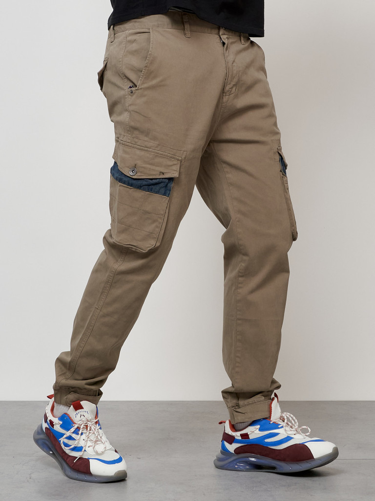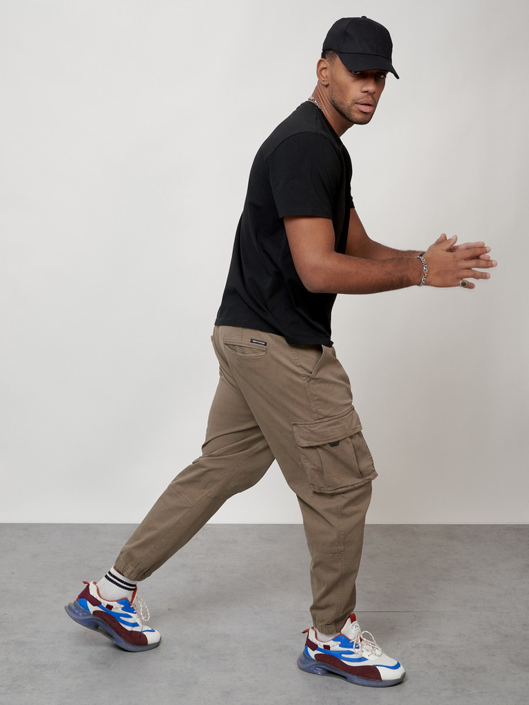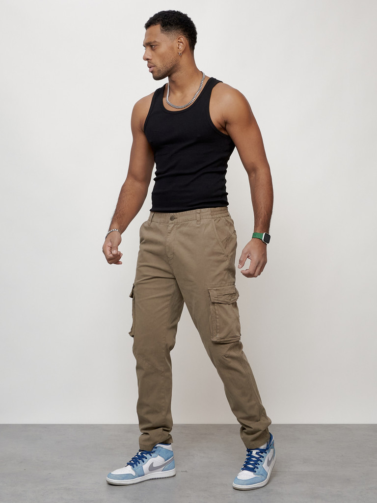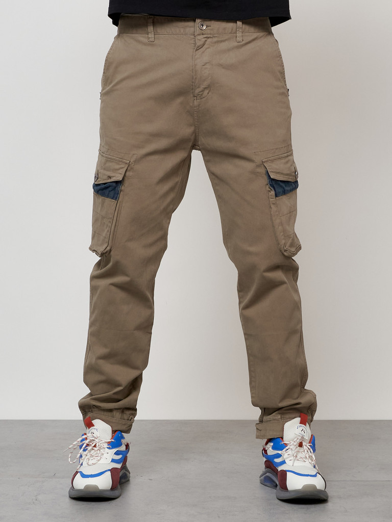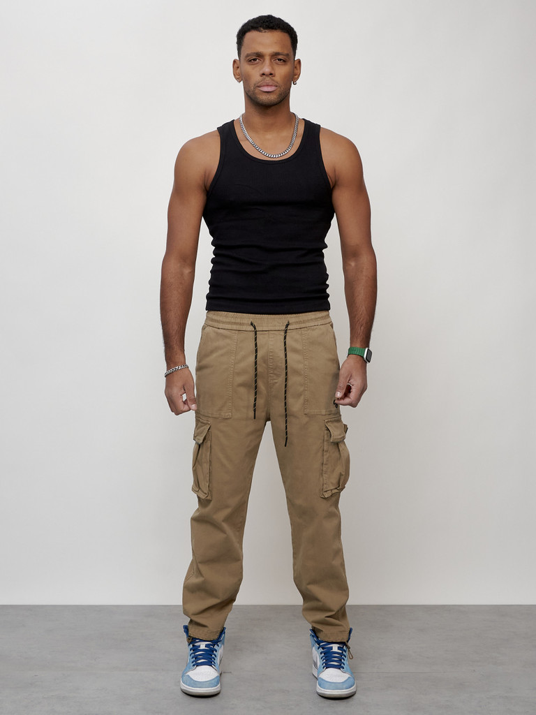 Джинсы карго мужские с накладными карманами коричневого цвета 2418KВопросы по товару