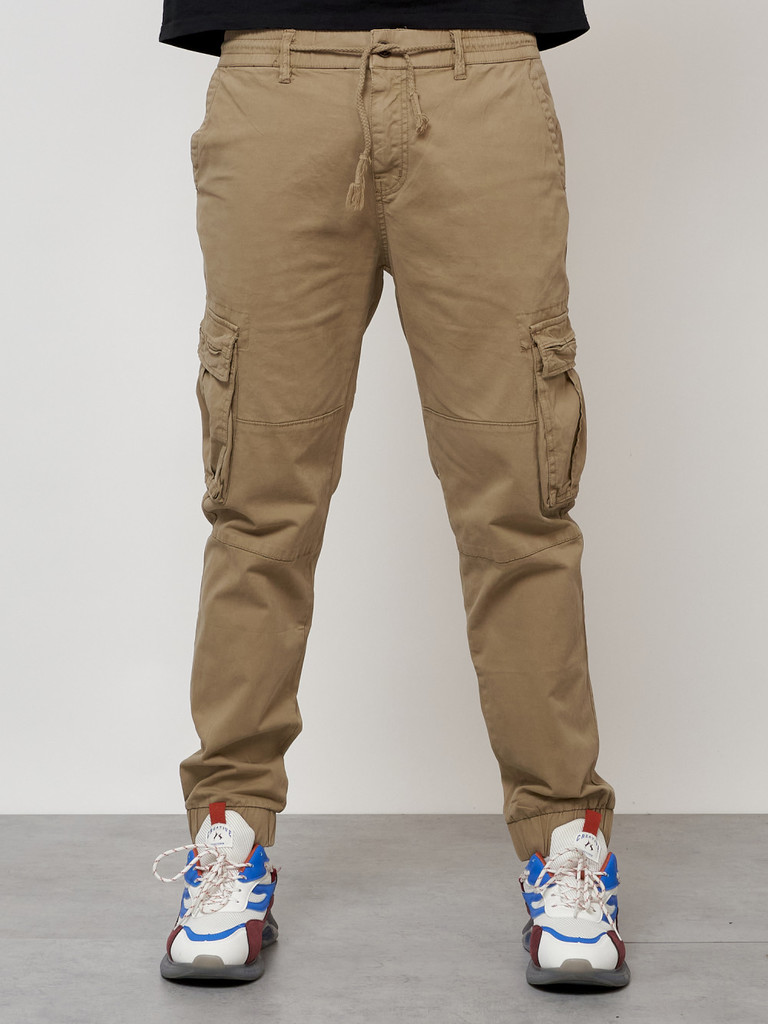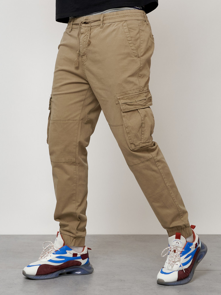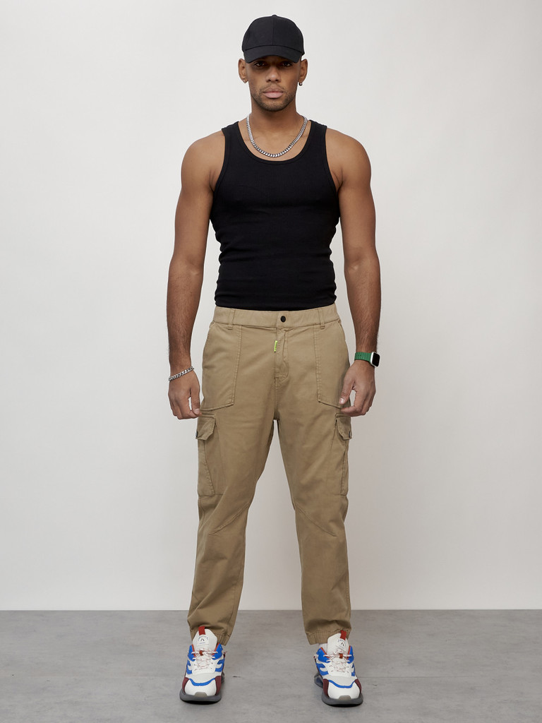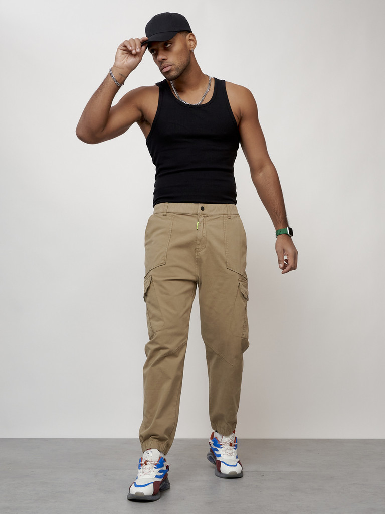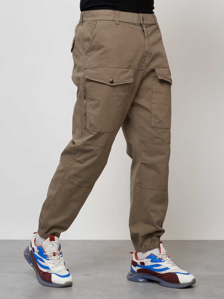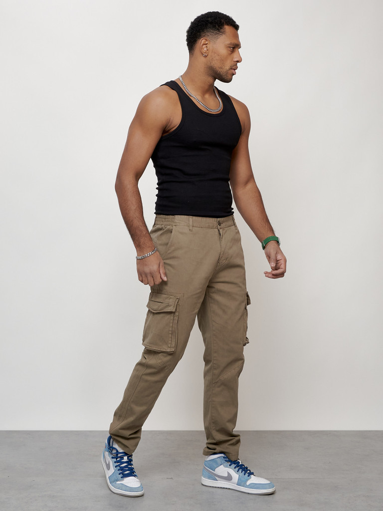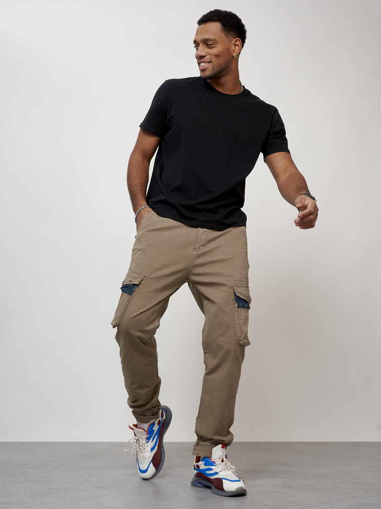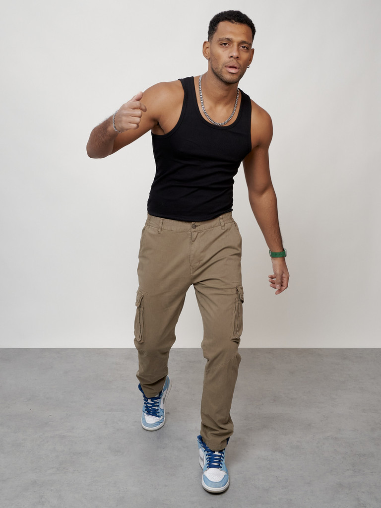 Джинсы карго мужские с накладными карманами коричневого цвета 2418KВопросы по товару